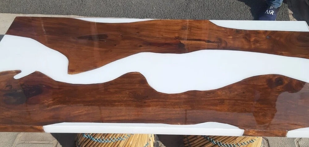 White Resin River Epoxy Dining Table Top handmade Wooden Furniture For Home Deco