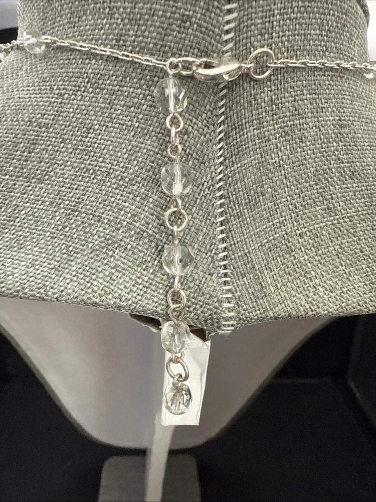 Vintage:NoBrand:UnbrandedMain Stone Creation:UnknownMain Stone Shape:RoundNumber of Gemstones:NumerousBase Metal:Sterling SilverCountry of Origin:UnknownAntique:NoCustomized:NoSizable:YesStyle:ChainCountry/Region of Manufacture:Unknowngtin13:Does not applySecondary Stone:No StoneType:NecklaceNumber of Diamonds:NoneHandmade:NoTheme:BeautyPendant Shape:RoundChain Type:UnknownMain Stone Treatment:UnknownWholesale:NoMain Stone:RhinestoneClosure:LobsterMetal:UnknownPendant/Locket Type:NoneColor:White SilverUPC:Does not applyFeatures:AdjustableEra:UndatedSigned:NoDepartment:WomenMaterial:Rhinestone, Beads, MetalMetal Purity:UnknownSetting Style:ProngOccasion:AllSeller Warranty:YesNecklace Length:15.5 InJewelry Department:FineCut Grade:UnknownEthnic & Regional Style:Unknown