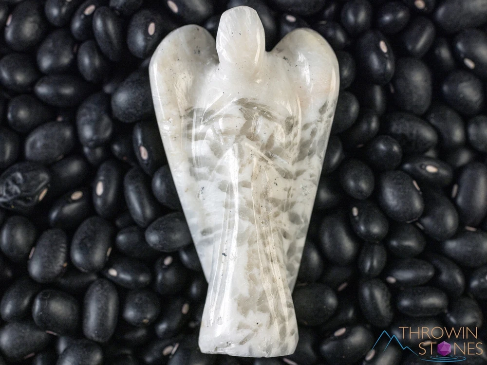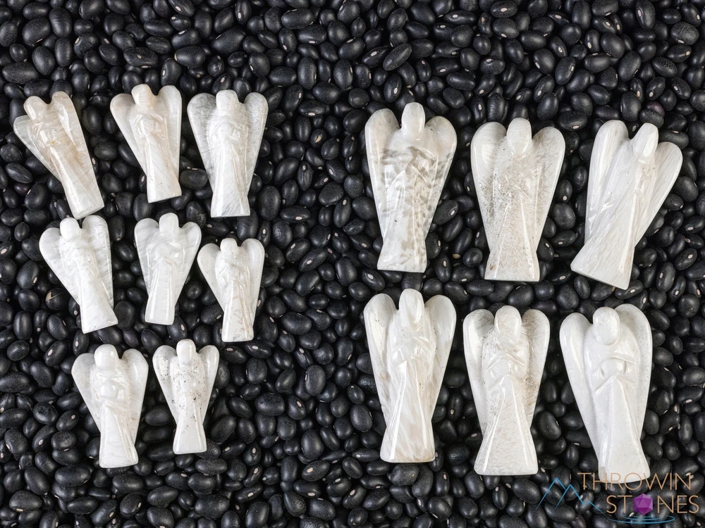 White SCOLECITE Crystal Angel - Healing Guardian Angel Figurines, Decor, E2078 Approximate Height: Extra Small: 1 - 1.5 inches (25 - 39 mm) Small: 1.6 - 2.4 inches (40 - 62 mm) Medium: 2.5 - 3.2 inches (63 - 82 mm) Large: 3.3 - 4.1 inches (83 - 105 mm) Extra Large: 4.2 - 4.9 inches (106 - 126 mm) Approximate Weight: Extra Small: 5 - 10 grams Small: 10 - 25 grams Medium: 30 - 55 grams Large: 40 - 70 grams Extra Large: 55 - 90 grams You will receive 1 stone angel. This listing uses professional photography that samples our collection. YOU WILL RECEIVE A SIMILAR STONE(S), BUT NOT AN EXACT STONE(S) IN THESE PHOTOS. Each stone is unique and beautiful so please expect slight variations in color, texture, and size. Please add a note to your order with any specific requests and we will do our best to fill it from the stock available. Some listings have multiple sizes. Please refer to the size ranges and note whether they are in inches or centimeters. 1 inch = 2.54 centimeters. Macro photography is used to show detail but can make items appear larger than their actual size. The ruler photo shows possible variations of the size and quantity you will receive. Gems and crystals are great for altars, grids, terrariums, pocket stones, gifts, home decorating, collecting and more! They are also wonderful additions to meditation, reiki, and chakra work. Healing crystals are not a replacement for traditional medical treatment. Please scroll down and read our Policies before you purchase. Feel free to contact us with any other questions. Thank you for supporting our small business! ! ABOUT US Hello! Throwin Stones is a family owned and operated business based in the Appalachian Valley of Asheville, North Carolina. We have travelled the world extensively and developed reliable and ethical sources for mineral specimens, crystals, and lapidary rough on every continent. We have been procuring and selling top grade and hard to find healing crystals, minerals and supplies for crystal enthusiasts, artisans, designers, metaphysical healers and collectors internationally for 20 years. We are proud to offer all types of metaphysical and healing crystals and minerals from around the world in our store in addition to beautiful, handcrafted jewelry, cabochons, rough and tumbled stones! If you are looking for pure, high energy crystals, you've come to the right place! As you browse our shop, you'll find the best of the best in Quartz, Sugilite, Garnet, Fluorite, Calcite, Jasper, Amethyst, Citrine, Agate, Garnet, Jade, Turquoise, Lapis, Moonstone, Ruby, Sapphire, Tiger's Eye, Lemurians, Tumbled Stones, Crystal Sphere, Merkaba, Chakra Set, Crystal Healing, Crystal Cleansing, Yoga, Meditation and more! Throwin Stones has exhibited at many of the major minerals shows worldwide including Tucson, Denver, Hong Kong, Tokyo, and Munich. Currently, we are putting our attention towards online platforms by offering worldwide sales of our diverse stone collection, which continues to grow daily! Our focus has always been on finding the new, rare, unique, uncommon and most desirable rocks & minerals. We travel to the Source to obtain our offerings! Have a look around our collection here and feel free to contact us with any questions. We appreciate your visit and from all of us at Throwin Stones, thank you for your business! Sincerely, Rusty & Nicole SHIPPING POLICY We ship worldwide! Shipping occurs five to six days a week from Asheville, North Carolina, USA. Our standard shipping options are: Domestic orders = USPS 1st Class or USPS Ground Advantage; our choice International orders = GlobalPost If you pay for a shipping upgrade, we will use that service. For jewelry and cabochon/gemstone orders over $500, we require signature confirmation. For all orders over $750, we require signature confirmation. We offer discounts for combined shipping. If Ebay does not combine your shipping, please try again from a desktop browser. If Ebay still does not combine your shipping, please contact us. Make sure your ADDRESS IS CORRECT AND COMPLETE. If your package arrives at someone else’s address because you gave us an incorrect address, we are NOT responsible for replacing your lost package. If we receive the package returned to us, you are responsible for the second shipping charge and will be billed before we can reship your package to the correct address. If we do not receive the package returned to us, you may place another order. In order to see shipping options and cost, you may have to complete the purchase process past the payment method in order to view and select shipping options. Shipping carriers may take longer than their service declares. We are not responsible if the shipping carrier is unable to achieve their delivery schedule. If you receive your package and it was damaged during shipping, you must be able to provide a photo of the damaged packaging and/or the damaged item in order for us to have everything we need to file an insurance claim. A refund may not be provided if you are unable to provide photos of the damaged packaging and item for insurance purposes. INTERNATIONAL SHIPPING While we have a quick processing time and ship your order within 1-2 days of receiving it, sometimes tracking will not begin for several days. If your tracking number does not show any movement on your package, please be patient. Carriers will often be in possession of packages but not show updated tracking information, even though the package is indeed moving. As we only have the same tracking information you have, please be patient and wait for your tracking to show movement before contacting us asking where your package is. On average, GlobalPost takes 10-14 days for packages to arrive at their final destination. HOWEVER, sometimes services can have delays, and we have experienced on rare occasions it can take 8 weeks or longer, depending on your country and your customs office. Be patient and please do not leave negative or neutral feedback with