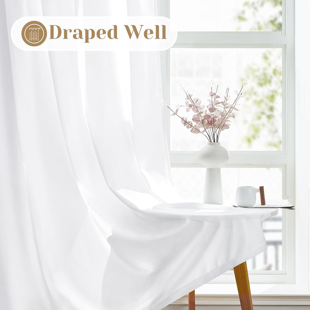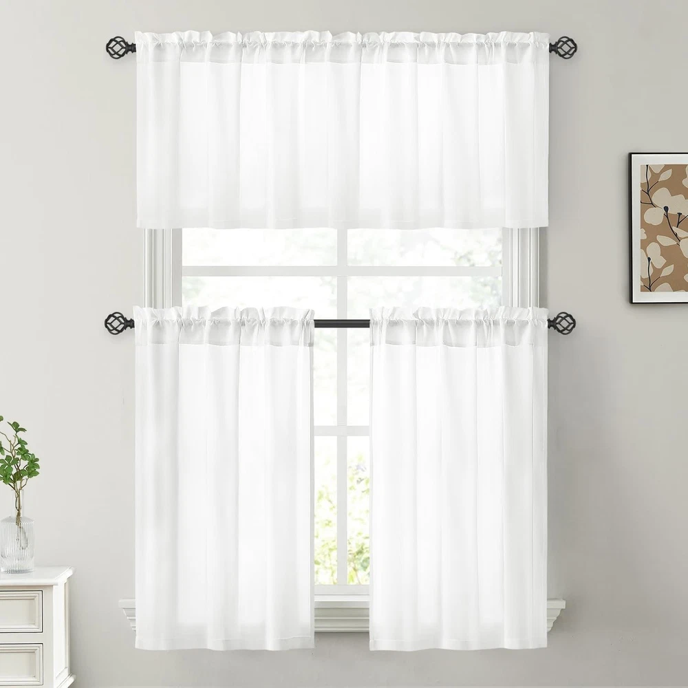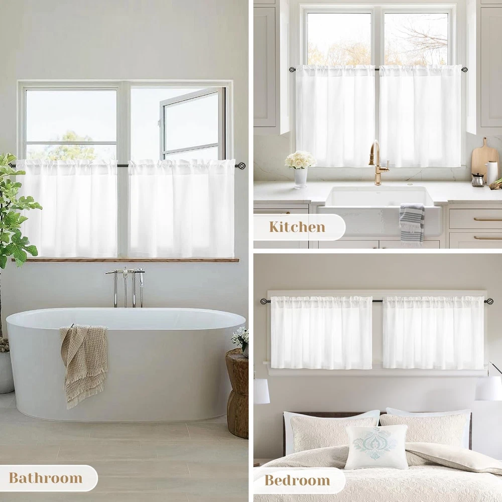 Package Includes: 2 Panels of Non-See-Through semi-sheer curtains. Each panel measures 30"W x 36"L. Privacy Protection: These privacy sheer curtains are perfect for filtering light. Hanging it will ensure your neighbors can't see what's happening inside. It's also very friendly to people with pet dogs at home, as it can prevent them from barking when they see people outside. Perfect for living room, bedroom, study, kitchen, cabinet, bathroom, basement, cabin and RV camper small windows. Quality Fabric: It is more textured than ordinary sheer curtains, silky smooth to the touch, and not easy to snag, suitable for families with cats. Easy to Install: The rod pocket design of these window sheer curtains makes installation very simple and will not damage the curtain rod. Easy Care: Machine washes cold with similar colors. Do not bleach. Tumble dry low. Cool iron if needed. Do not dry clean.