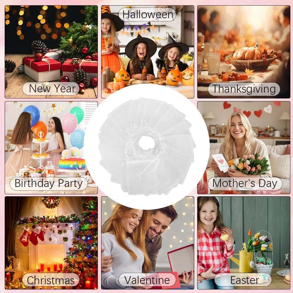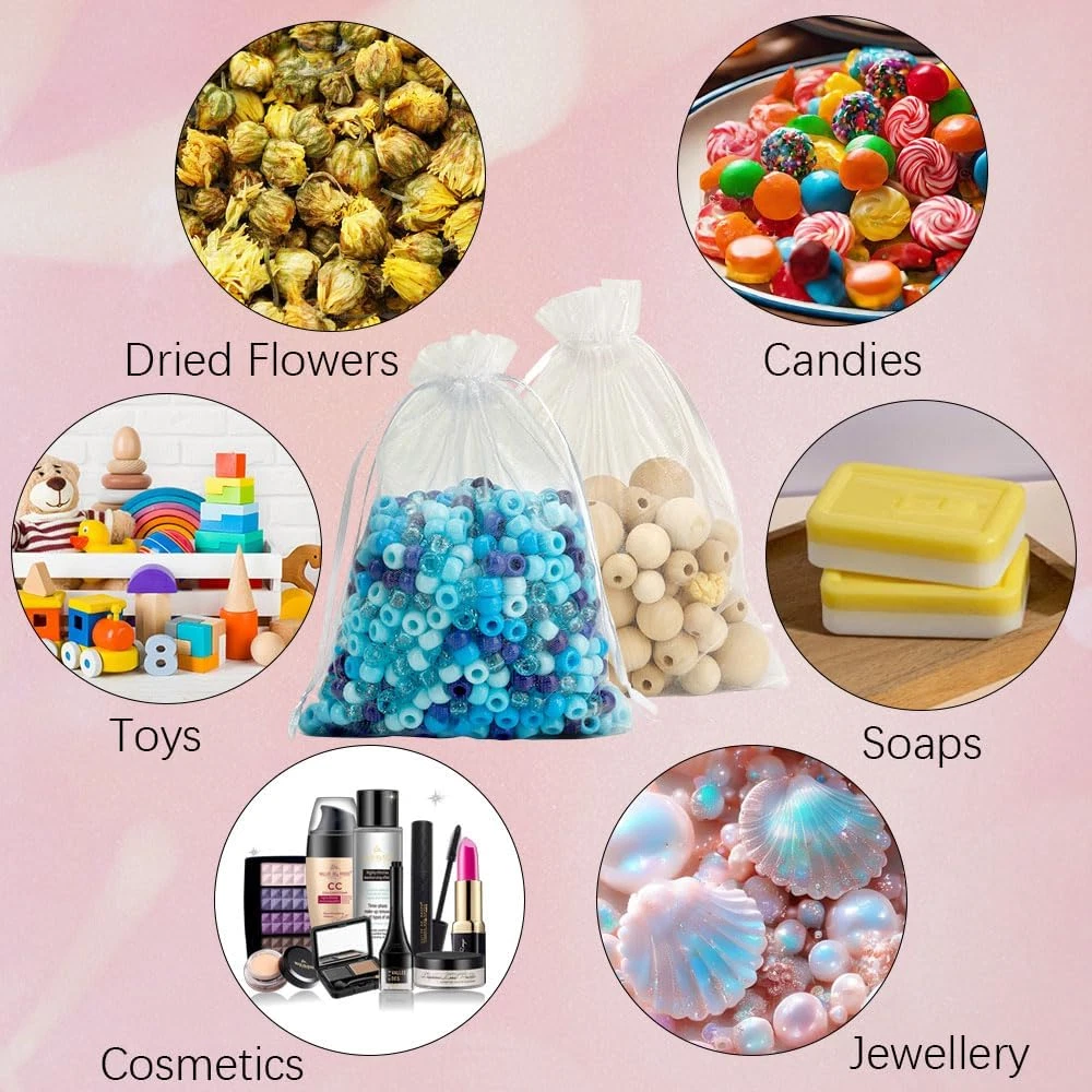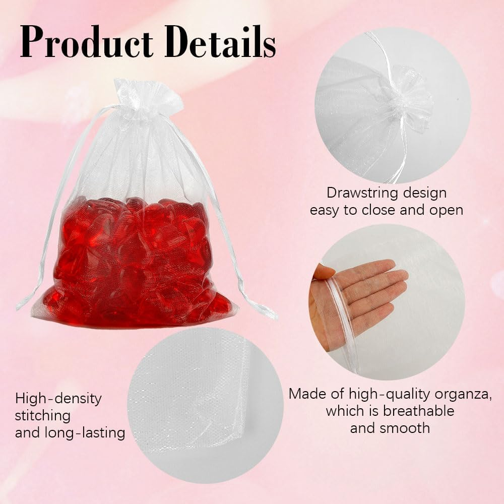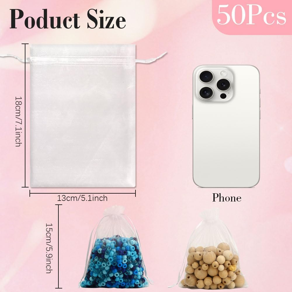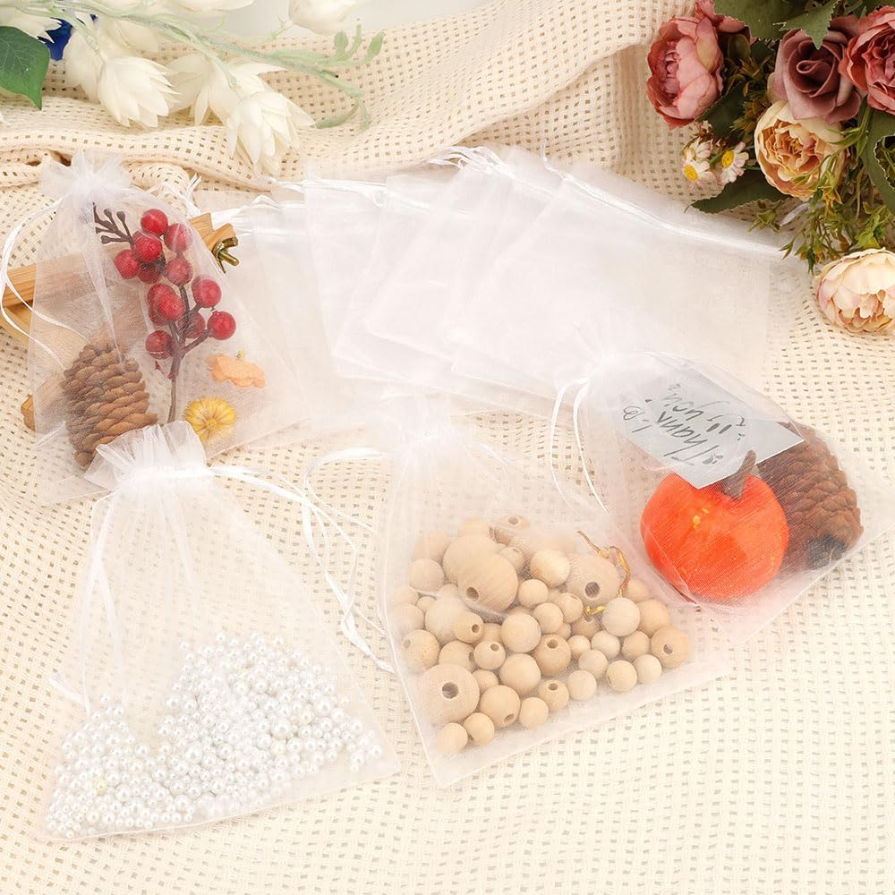 White Sheer Organza Bags 5x7 Inches 50 Pack Drawstring Gift Bags