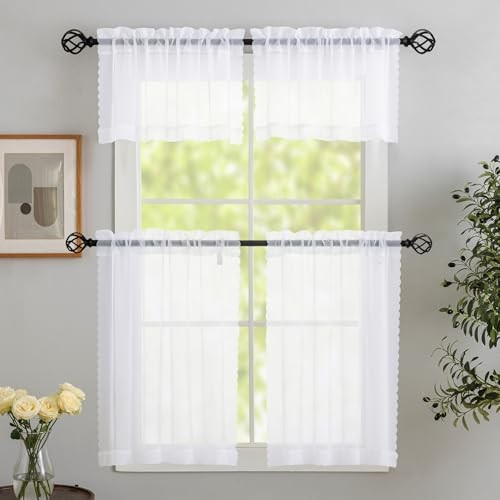 Return Policy Fast Delivery Trusted seller White Sheer Tier Curtains - 30 inch Length, Transparent Half Window Curtains for Kitchen, Bathroom, Cafe - Light Filtering Voile Panels, Rod Pocket, 2 Panels, 30Wx30L Product Description 100% Polyester Voile Imported ☀HIGH-GRADE MATERIAL. Luxurious 100% polyester voile fabric. We are known for its durability & quality control. ☀SIZES TO FIT EVERY NEED. Sheer Window Curtain Panels measure 40" wide and are available in lengths of 45", 54", 63", 72", 84", 90", 95", 108". ☀THE RIGHT BALANCE OF PRIVACY AND LIGHT. Smartly allowing natural light flowing into your room, while still providing privacy. Sheer curtain panels keep your spaces bright and cheerful without worrying about visibility from outside. ☀NICE DESIGN. Make a pretty soft and natural look to your windows, give your interior spaces a soft, fresh, elegant look by putting up our sheer panels everyw in your home. ☀SHEER CURTAINS ARE EASY TO CARE. Machine wash cold, gentle cycle, tumble dry low, light iron as needed. Shipping Returns Payment Shipping Shipping is FREE to all addresses other than APO/PO boxes in the lower 48 states. All our stock ships from US-based warehouses. Shipped via USPS or UPS (depending on location and package weight) Unless stated otherwise, all orders will ship within 24-72 hours of your payment being processed. Check our feedback to see the great reviews of FAST shipping we offer. Returns Seller does not accept returns Payment We currently accept payment via eBay managed payments only. Once payment is cleared, we will dispatch your shipment within 1-3 business days. Please refer to the "Shipping" tab for more information regarding shipping speed to your destination.