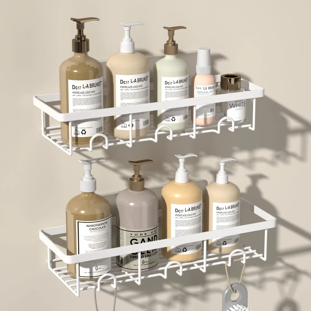【Bathroom Organization and Storage】-- Are you still tired of shampoo bottles sitting on the floor? Bottles are always knocked over and clutter up the ground! Products all over the place but there is no storage space! Here Oasiteege shower caddy organizer offers you more space and helps you to organize the bathroom of home, college dorm, apartment, farmhouse, camper and RV. With these shower shelves for inside shower, the bathroom must haves, everything is easier for you to get! 【Easy to Install】-- These shower storage rack is quite easy to install! What you need to do is to wash the bathroom tile walls, dry the wall really good and then apply the adhesive; Make sure the air bubbles are squeezed out and wait for 24 hours!! Then hang the shower basket. No drill needed! It is not recommended for painted surfaces, plaster walls, cement walls and wallpaper walls. 【Sturdy Adhesive Shower Organizer】-- Made of carbon steel, wall mounted with sturdy adhesives, the capacity of this shower basket organizer is up to 20 lbs, which is sturdy enough to hold 17 bottles of 20.4oz shampoo. And this shower holder organizer is waterproof, rustproof and scratch-resistant. 【Aesthetic Bath Decor and Accessories】-- This bathroom organizer uses carbon steel material with surface painted into white, it is a nice contrast to the restroom accessories. You can also decorate your bathtub, kitchen, bedroom, living room, dining room or laundry room with this cute shower rack! 【2 Pack Shower Caddy Set】-- This suction shower shelf set contains 2 shower shelves to store and de-clutter a plenty of shower stuff. Make it perfect bathroom gadgets and new apartment essentials for first apartment. If You Need Extra Adhesives, You Can Find It In Oasiteege Store!