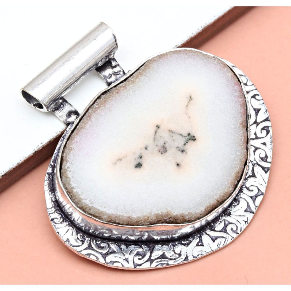 This stunning white solar drusy pendant is a must-have! The 925 silver setting adds elegance, while the natural gemstone sparkles beautifully. Perfect as a gift—lightweight yet high-quality, with a delicate 1.5" size. Love the craftsmanship and unique design!