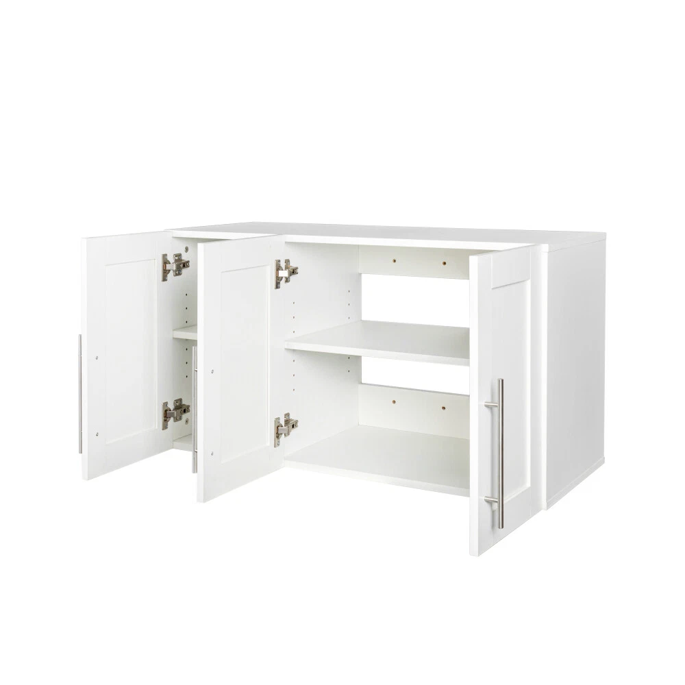 Dimensiopns:15.75 D x 35.43 W x 19.69 H Stackable Wall Mounted Storage Cabinet Product design reasonable artistic practical. it is ideal for stand-alone overhead storage or paired with other elite storage cabinets Wooden side cabinet, with movable shelves, 2 movable partitions, 6 stop height adjustment, to provide greater storage space. products are easy to clean so you can do-it-yourself! Weight:46.30 Ibs This self-storage unit can be used as a buffet table in the dining room, a TV media stand in the living room or extra storage in the home office. Install on solid brick, concrete or an installation surface equivalent to its strength. Stackable Wall Mounted Storage Cabinet, 15.75 D x 35.43 W x 19.69 H, White Generous space :15.75 inches deep, offers creative storage solutions in kitchen, laundry room, bathroom, garage and more Measures15.75 "D x 35.43" W x 19.69 "H, it is ideal for stand-alone overhead storage or paired with other elite storage cabinets Wooden side cabinet, with movable shelves, 2 movable partitions, 6 stop height adjustment, to provide greater storage space. Quality material: This wooden sideboard is made of 15mm E1 particleboard, easy to clean with a dry cloth and suitable for daily use. Versatile: This self-storage unit can be used as a buffet table in the dining room, a TV media stand in the living room or extra storage in the home office. Install on solid brick, concrete or an installation surface equivalent to its strength. Its bearing capacity should be greater than 100 kg/square meter. Sand walls, drywall, marble, glass, and steel can not be used to mount a television. Material:Material is 15mm particle bpard,back board is 3mm MDF.Made of wooden structure with melamine finish for durability and easy maintenance. Aufgrund des Lichts oder der Anzeige kann die Farbe des tatsächlichen Produkts geringfügig vom Bild abweichen.