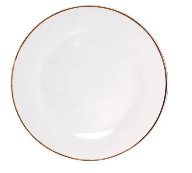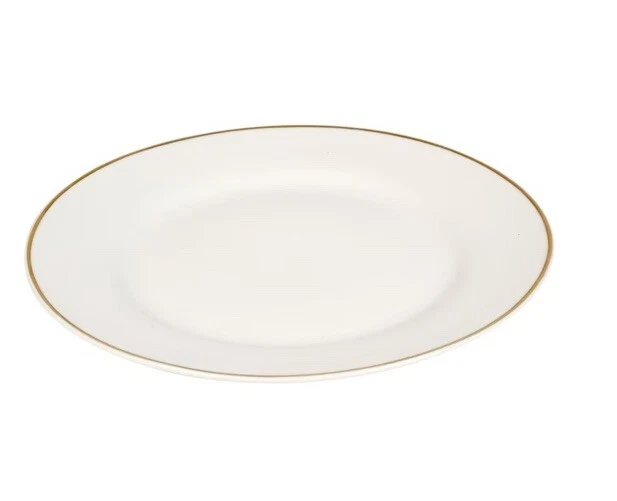 White Stoneware Dinner Plate with Gold Rims, 10.5-in Contemporary Elegant