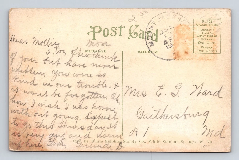 Original/Licensed Reprint: Original Country/Region of Manufacture: Unknown Theme: Cities & Towns Country: USA City: White Sulphur Springs Era: Vintage Subject: Cities & Towns Type: Printed (Lithograph) Postage Condition: Posted Unit of Sale: Single Unit Region: West Virginia