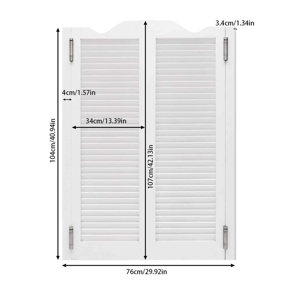 White Swinging Door Double Half Door Double-hinged Café Door With Hinges Description Entering an extraordinary space, the magic of space is brought by our double-door swinging door. Our product combines aesthetics and practical functionality to help you easily plan your room layout. The product uses high-quality materials to provide you with a safe and healthy environment. Rural style design can adapt to various decoration styles and enhance the overall style. Upgrade now and enjoy a high-quality life! Key Features Good Materials: The product is made of high-quality pine wood and aluminum alloy that have been polished and painted for high smoothness and hardness. It has stable performance and can maintain its beauty for a long time. User-friendly Design: The design of the double door can open and close 180 degrees without rebounding, bringing more convenience to use. In addition, the smooth hinges do not make too much noise, providing you with a quiet working or resting environment. Eco-friendly & Safe: This product uses water-based paint and uses natural pine wood as the main material, which does not release harmful substances, allowing you and your family to enjoy a healthy and safe environment. Practical Function: In addition to decoration, this product can also improve the layout of your home, protect privacy, and block sight, providing you with a comfortable indoor environment. Simple Installation: Simple construction and complete accessories allow you to complete the installation and start using it in a short time. Easy Clean-Up : The surface of the product is smooth and the structure is simple. You can easily use a soft cloth to wipe it clean. Ideal Gift: With a fresh appearance and complete functions, this item can be regarded as a holiday or housewarming gift for parents, friends, and lovers so that they can enjoy a more convenient life. Customer Service: We aim to provide quality products and services. If you have problems, please feel free to contact us. We will reply and solve the problem for you as soon as possible. Details Solid Doorposts: It is convenient for you to install and can also prevent damage to the wall. Reserved Grooves: They can help you quickly determine the hinge position and ensure a stable installation. Application This product can be widely used in corridors, kitchens, clubs, libraries, checkout counters, offices, cafes, shopping malls, bars, reception rooms, clubs, living rooms, balconies, terraces, and other scenarios. Installation Steps for Hinges 1. Hands-on the doorpost to make holes in the wall and install expansion bolts. 2. Fasten the hinges to the doorpost and the door. 3. Insert an Allen key into the adjustment hole to each hinge, and insert the pin. 4. Adjust the bottom hinge in the same way. 5. All hinges must be installed at the same time. Specification Color: White Style: Countryside Material: Pine Wood, Aluminum Alloy Process: Polishing, Painting Indoor/Outdoor Use: Indoor Assembly Required: Yes Mount Type: Wall-Mounted Post Size: 4*3.4*104cm/1.57*1.34*40.94in Each Door Size: 34*3.4*107cm/13.39*1.34*42.13in Total Width: 76cm/29.92in Package Size: 108*40*10cm/42.5*15.7*3.9in Gross Weight: 13kg/28.66lbs Package Included 1 * Double-door Swing Door 4 * Hinges Other Accessories for Installation Notes Please note that the installation width should be greater than the product width. Please do not expose the product to sunlight or soak it in water for a long time. It is normal that the expansion screw will blow up after the force is applied. Please allow the slight color difference caused by the shooting light and 1-3cm error due to manual measurement, and make sure you do not mind before ordering. Payment Delivery details Terms of sales About us Contact us Payment We accept ebay payment 。 Fees such as import duties, taxes are not included in the item price or shipping costs. These charges are the buyer's responsibility. Delivery details Shipping: 2-9 working days to: USA Terms of sales We maintain high standards of excellence and strive for hundred percent customer satisfaction. Feedback is very important to us. We hope that you contact us immediately before you give neutral or negative feedback, so that we can address your concerns. It is impossible to address issues if we do not know about them! About us Your satis faction is our ultimate goal. We work hard to earn your trust and future business. Our certified technicians have tested each item before shipping. The unit comes with 1 year limited warranty on all manufacturing defects. a) If you receive a defective item, you may return it or ask for a discount. Please contact us within 14 days after you receive the package. b) What you returned must be intact and in its original packaging as re? u. Customer is responsible for shipping costs of the returned item. c) We will cover the cost of shipping back t with the shipping rate indicated in the registration page. We will send you a new unit or refund the full payment you paid. Thank you. Contact us Business Hour Business Hour: Monday To Friday: 8:30 AM to 5:00 PM (Beijing China time) Due to time zones, our reply to your questions may not be immediately. But within above working time, we will reply your email within 24 hours. If it's non-workdays, please kindly be patient and wait till Monday. Please contact us with ebay message. Please feel free to contact us if you have any questions. Monday To Friday: 8:30 AM to 5:00 PM (Beijing China time) Due to time zones, our reply to your questions may not be immediately. But within above working time, we will reply your email within 24 hours. If it's non-workdays, please kindly be patient and wait till Monday. Please contact us with ebay message. Please feel free to contact us if you have any questions. *Festures1 Durable Material,Good quality Brand Unbranded Color White Style Countryside Material Pine Wood, Aluminum Alloy Process Polishing Indoor/Outdoor Use Indoor Assembly Required Yes Mount Type Wall-