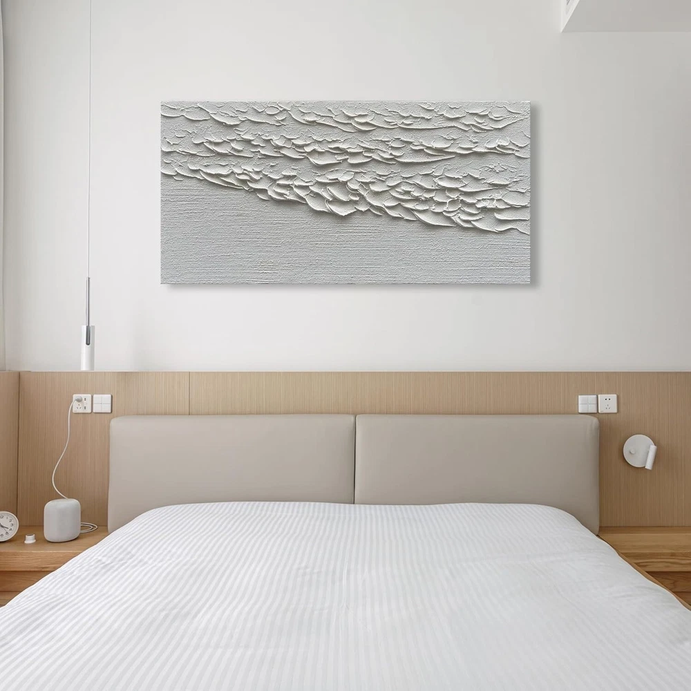 White Wave Abstract Hand drawn Oil Painting Decorative Mural Hanging Painting