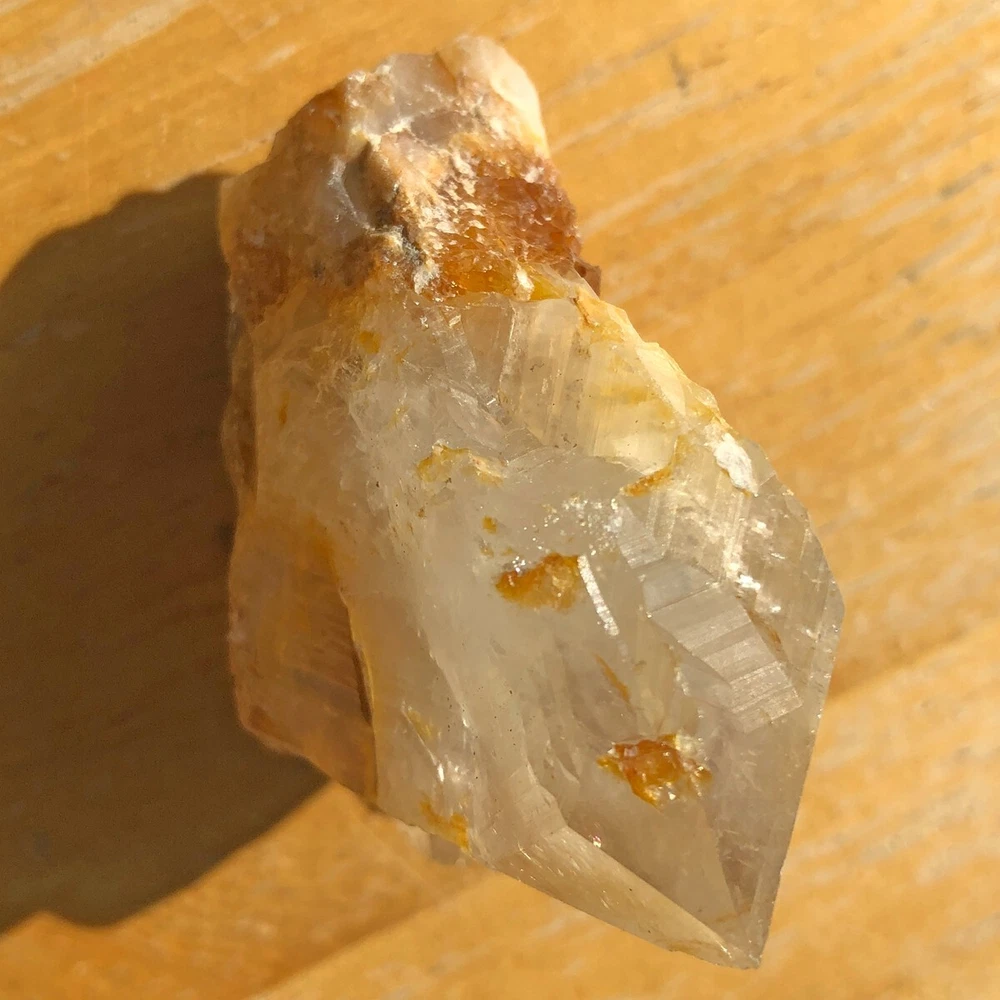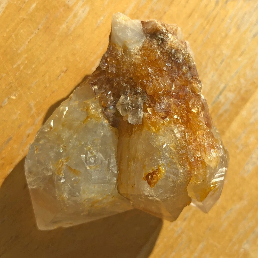 Cactus Quartz or Spirit Quartz Size Approximately 3 cm x 4.5 cm x 5.5 cm 75.2 g View My Other Items For Sale Visit My eBay Store Add me to your Favorite Sellers A cactus or spirit quartz is a quartz crystal that is encrusted by a second generation of smaller crystals grown on its prism faces. These crystals were first discovered in 1986 in the Magaliesberg Mountain Range near Pretoria, South Africa. It occurs as quartz, citrine and amethyst, and comes in a wide range of colors, including purple amethyst, violet amethyst, smoky, milky clear and golden citrine. FAQ/Tips Crystals are priced by quality, color and size. Purple amethyst is more highly prized and will cost more for a smaller lesser quality crystal. Lavender is the most common color and where you will find the best quality/value for price Crystals change colors with changes in type angle and intensity of light. Color may also vary between monitors. Pictures were taken in bright natural light. We do our best to give you many views so you can judge the quality of the given crystals. If you have questions please ask before bidding or buying. Many of the crystals have special color properties: Many have phantoms, not just the ones we?ve indicated. Some have ?floating? purple tips. The placement of darker purple against purple or white crystals appears to change as the crystal is turned. Many are a mixture of citrine and amethyst. The ones called ?Golden Healers? or ?Sunshine? have a rainbow effect on crystal faces. We value your feedback please contact us with problems. Items are returnable. Track Page Views With Auctiva's FREE Counter