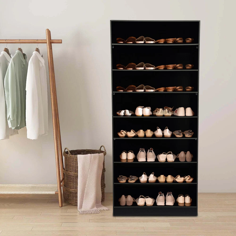 Description In our daily life, a neat and organized space can make us feel relaxed and happy. The feeling of coming home starts from entering the door and changing shoes. Look at our shoe storage cabinet made of high-quality PVC wood plastic board and mesh foam with a PVC co-extruded layer process. With its large capacity and elegant appearance, this item makes you feel warm, giving you a sense of pleasure and comfort from the moment you walk in the door. Key Features Build to Last: It is made of high-quality PVC wood plastic board and mesh foam with a PVC co-extruded layer process, which makes it strong and durable, not easy to deform, so you can use it with peace of mind in your daily life. Large Capacity: With eight tiers of shoe storage and room for 4 pairs of regular shoes per tier, this product is big enough for a family's shoe storage needs. Strong Load-bearing Capacity: The premium materials and rectangular structure allow to withstand up to 110.23lbs without collapsing, giving you a piece of mind. Shoe Storage Assistant: It cleverly integrates shoe storage into life, placing it at the doorway to store your messy shoes, making it pleasing to the eyes as soon as you open the door, and bringing you an organized lifestyle. Thoughtful Design: The open design allows you to see your shoes at a glance while still allowing for effective ventilation. You can also change the tier spacing by removing the tiers to fit different sized shoes and items. Space Saving: It utilizes vertical space wisely and has a small footprint(31.5*11.81 inches), so this cabinet won't take up much space in the room. Elegant Appearance: The sleek black finish and simple structure create a touch of elegance and casualness. It blends well with a variety of interior styles, bringing stylish functionality and aesthetics to your space. Easy to Install: A full range of accessories, a detailed English assembly diagram and simple construction allow you to install and use quickly. Hassle-free Cleaning: Thanks to its smooth surface and simple structure, you can easily clean it with water and a rag (not included). Ideal Gift : Beautiful appearance and practical function make it a nice housewarming gift for your family and friends. Practical Gloves: They make installation quicker and protect your hands from scratches. Sandpaper: It allows you to grind the surface of the product to make it polished and smooth. Mesh Foam Non-slip Pads: They stabilize that product well and won't scratch the floor. Application It can be used in the foyer, living room, porch, corridor, and other places for storing shoes, trainers, sandals, sundries, towels, flower pots, and so on. Specifications Material: PVC Wood Plastic Board, Mesh Foam Process: PVC Co-extruded Layer Style: Modern Color: White/Black Mount Type: Freestanding Product Care Instructions: Wipe with Damp Cloth Shape: Rectangular Assembly Required: Yes Number of Tiers: 8 Number of Compartments: 8 Number of Shoes Applicable Each Tier: 4 Pairs Overall Load-bearing Capacity: 50kg/110.23lbs Gross Weight: 17kg/37.48lbs Net Weight: 16kg/35.27lbs Each Compartment Size(L*H): 77*19cm/30.31*7.48in Overall Product Size: 80*30*178.7cm/31.5*11.81*70.35in Package Size: 95*46*15cm/37.4*18.11*5.91in Package Included 1*Shoe Storage Cabinet 1 Pair*Gloves 1*Sandpaper 1*English Assembly Diagram 1*Schematic Diagram of Sandpaper Grinding All Accessories for Assembly Notes Please confirm the installation dimensions before purchasing. Please note that this product does not include display items such as shoes. Please note that the number of shoes that can be stored will vary depending on the size and height of the shoes. Please wear the glove (included) when assembling. Please allow the slight color difference caused by the shooting light and 1-3cm error due to manual measurement, and make sure you do not mind before you order. Payment Delivery details Terms of sales About us Contact us Payment We accept ebay payment 。 Fees such as import duties, taxes are not included in the item price or shipping costs. These charges are the buyer's responsibility. Delivery details Shipping: 2-9 working days to: USA Terms of sales We maintain high standards of excellence and strive for hundred percent customer satisfaction. Feedback is very important to us. We hope that you contact us immediately before you give neutral or negative feedback, so that we can address your concerns. It is impossible to address issues if we do not know about them! About us Your satis faction is our ultimate goal. We work hard to earn your trust and future business. Our certified technicians have tested each item before shipping. The unit comes with 1 year limited warranty on all manufacturing defects. a) If you receive a defective item, you may return it or ask for a discount. Please contact us within 14 days after you receive the package. b) What you returned must be intact and in its original packaging as re? u. Customer is responsible for shipping costs of the returned item. c) We will cover the cost of shipping back t with the shipping rate indicated in the registration page. We will send you a new unit or refund the full payment you paid. Thank you. Contact us Business Hour Business Hour: Monday To Friday: 8:30 AM to 5:00 PM (Beijing China time) Due to time zones, our reply to your questions may not be immediately. But within above working time, we will reply your email within 24 hours. If it's non-workdays, please kindly be patient and wait till Monday. Please contact us with ebay message. Please feel free to contact us if you have any questions. Monday To Friday: 8:30 AM to 5:00 PM (Beijing China time) Due to time zones, our reply to your questions may not be immediately. But within above working time, we will reply your email within 24 hours. If it's non-workdays, please kindly be patient and wait till Monday. Please contact us with ebay message. Please feel free to contact us if you have any questions. Brand Unbranded Item Height 70.3