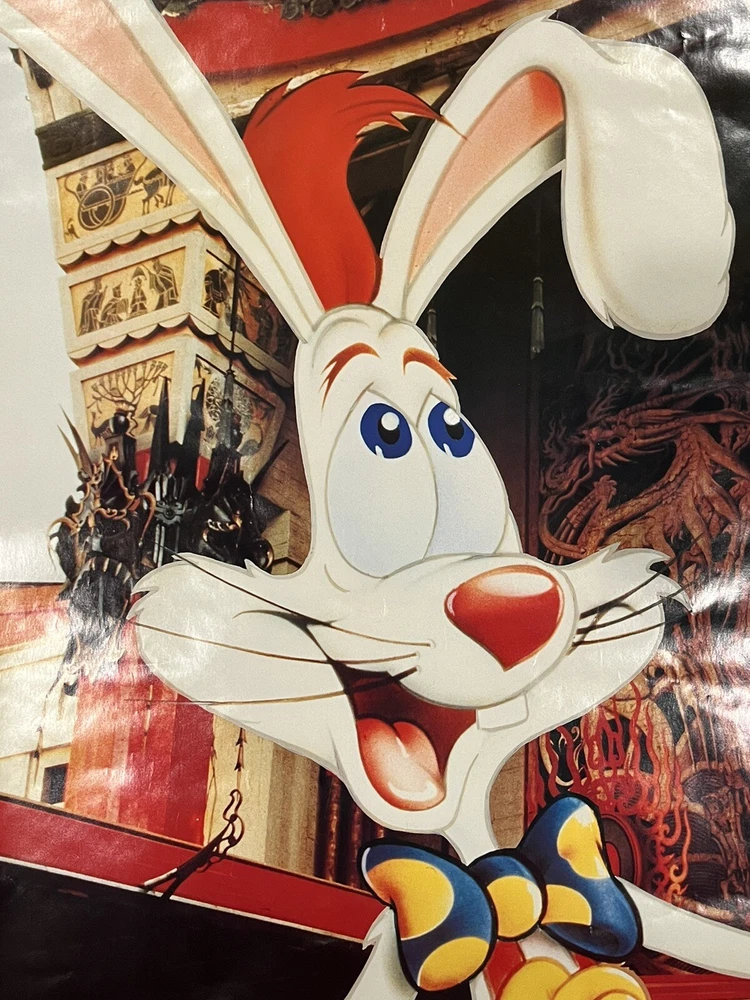 Who Framed Roger Rabbit 1987 Rare Life Sized Vintage Movie Poster Videocasette Mann's Chinese Theater Height:76” Width:26" In greath shape but some minor flaws from storage.