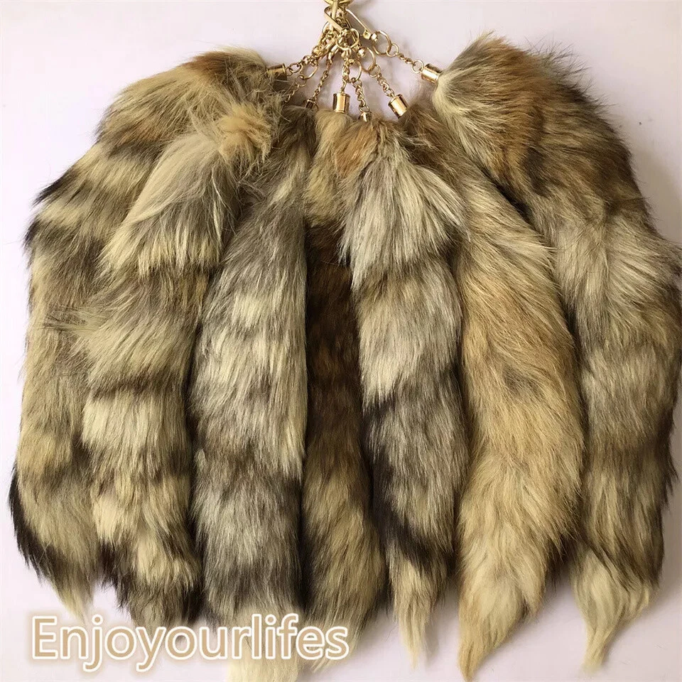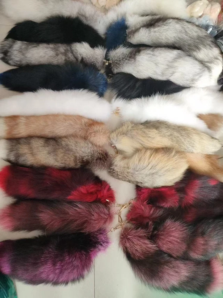 Wholesale 2-10pcs 16-18 inch Real Fox Fur Tail Keychain Cosplay Accessory