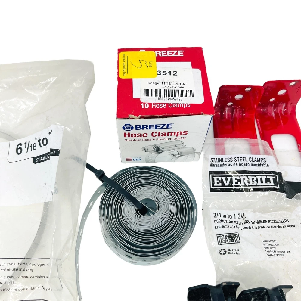 Wholesale Pack of Halex Everbilt Hose Clamps, One Hole Straps, Rivets and More Lot Includes: 50 pcs Umpco S325G 3/8" Plated Steel Cable Clamp 1/2" Wide 7 pcs Breeze Hose Clamps Stainless Steel 11/16 in - 1-1/4 in Range King Seal 671 Clamp Stainless Steel 6-1/16 in to 7 in Everbilt Stainless Steel Clamp 3/4 in to 1 3/4 in 4 pcs Halex 96152 EMT One Hole Strap 3/4 in 25 pcs Essentra Components Fir Tree Rivet Barbed Fastener 0.062" 0.250" 1.58mm 6.35mm Grip Range Nylon 27XT1250250 25 pcs Essentra Components Fir Tree Rivet Barbed Fastener 0.062" 0.375" 1.58mm 6.35mm Grip Range Nylon 27XT1250250 --- Shipping Policies We take great care in packaging every item to ensure safe & quality shipping. We ship UPS/USPS/FedEx/DHL depending on your location and at our discretion. Most shipments are sent out within 1-2 business day after payment is confirmed or cleared, unless stated otherwise in the listing. Please make sure to provide the correct shipping address when placing your order, orders can only be shipped out to the confirmed shipping address provided by eBay. Packages are not shipped on Sunday. As transit time varies by carrier, we are unable to control delays caused by carriers. Shipping time provided by eBay is an estimation and is not guaranteed. It is also subject to change during peak periods. Buyers are responsible for complying with all import and export obligations and for payment of all applicable duties and custom fees. Orders shipping to Hawaii, Puerto Rico, Guam or Alaska may not select the Free Shipping option for this item, if free shipping is selected for one of these destinations, we reserve the right to cancel your order. Return Policies Items must be returned in the original manufacturer's packaging. We strongly recommend you keep your packaging for at least the first 30 days after purchase. We offer a 30 day return policy on all items. (unless stated otherwise in the listing). Video games must be returned unopened. If the item is defective, it can be returned within 15 days with a receipt and the original packaging. Defective items may only be exchanged for the same title. All returns must be in original condition and must include the original packaging and content intact. Returns must be packed in proper packaging to avoid damage to the item or its original packaging. For any return requests please contact us to receive a RMA number and return instructions. 10% - 20% restocking fee may apply. Please allow 3-5 business days after we receive your package to process your return. Any returns that violate this return policy will not be accepted and will be sent back at the customer's expense. The following electronics items must be returned within 15 days of receipt: Computers, Computer hardware, Printers (including 3D printers), 3D printing supplies and products, Camcorders, Digital cameras, GPS units, Digital music players, Tablets, E-readers, Portable video players, Drones, Video Game Consoles, Video Games. Contact Us We take joy in helping you get the gear you want at the price you need. Please don't hesitate to contact us with any questions or concerns. You can contact us via eBay message. Products Most of our photos are of the actual item you are purchasing. We work hard to include a lot of pictures of each item. We do our best to describe the items and their conditions. Please see item photos for all the details. All components are as shown in the photos, no additional parts will be shipped. Please note that some of the product descriptions are provided by manufacturers and may not represent the exact color, size or style of the actual item.