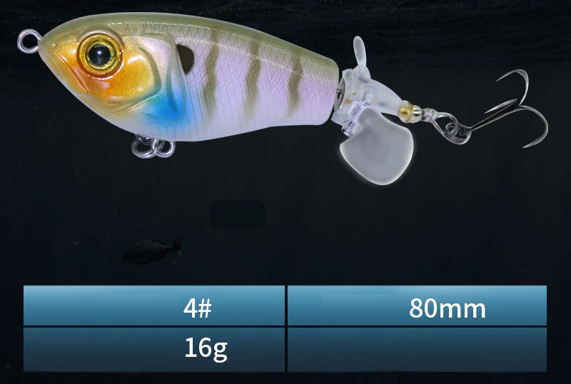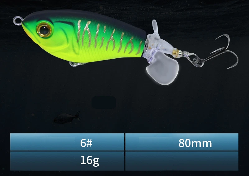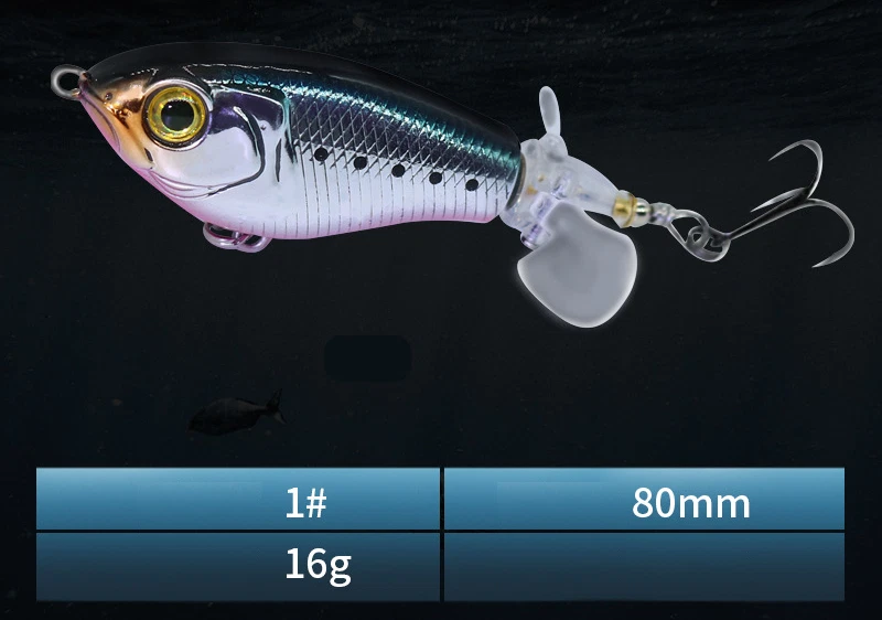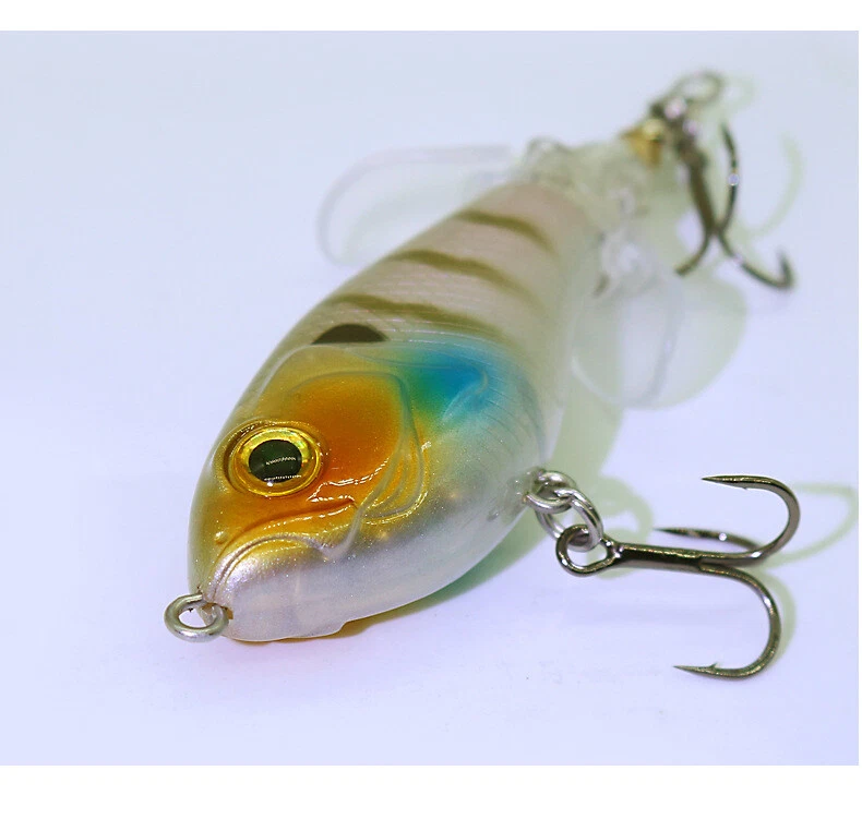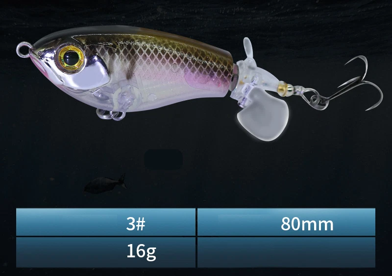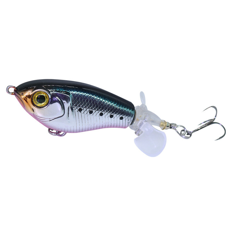 This topwater lure is a game-changer! The vibrant colors and lifelike swimming action instantly grab attention, while the built-in gravity balls add noise and casting distance. The double propellers create an irresistible surface disturbance, and the sharp treble hooks ensure solid hooksets. Perfect for aggressive strikes—it mimics a wounded baitfish so well that bass can't resist. The durable design holds up against big fish, making it a must-have for any angler targeting explosive topwater action.