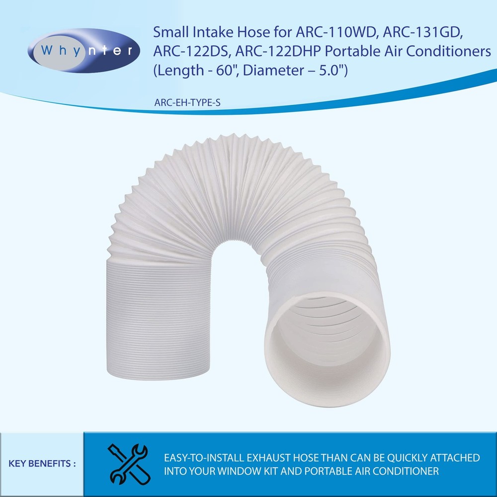 One exhaust or intake hose for Whynter portable air conditioner models ARC-110WD, ARC-122DS, ARC-122DHP, ARC-12S, ARC-12SD, ARC-12SDH, ARC-131GD, ARC-14S, ARC-14SH and ARC-143MX, ARC-141BGcooling power:12000 Exhaust hose for Portable Air Conditioner Models ARC-101CW, ARC-122DS, ARC-122DHP, ARC-12S, ARC-12SD, ARC-12SDH, ARC-131GD, ARC-14S, ARC-14SH, ARC-143MX, ARC-141BG 5.0" diameter Extendable up to 59"