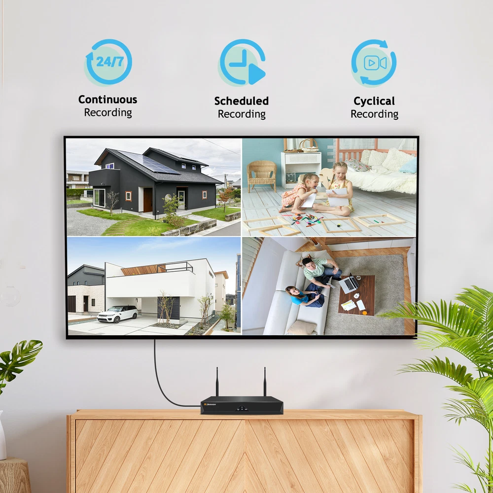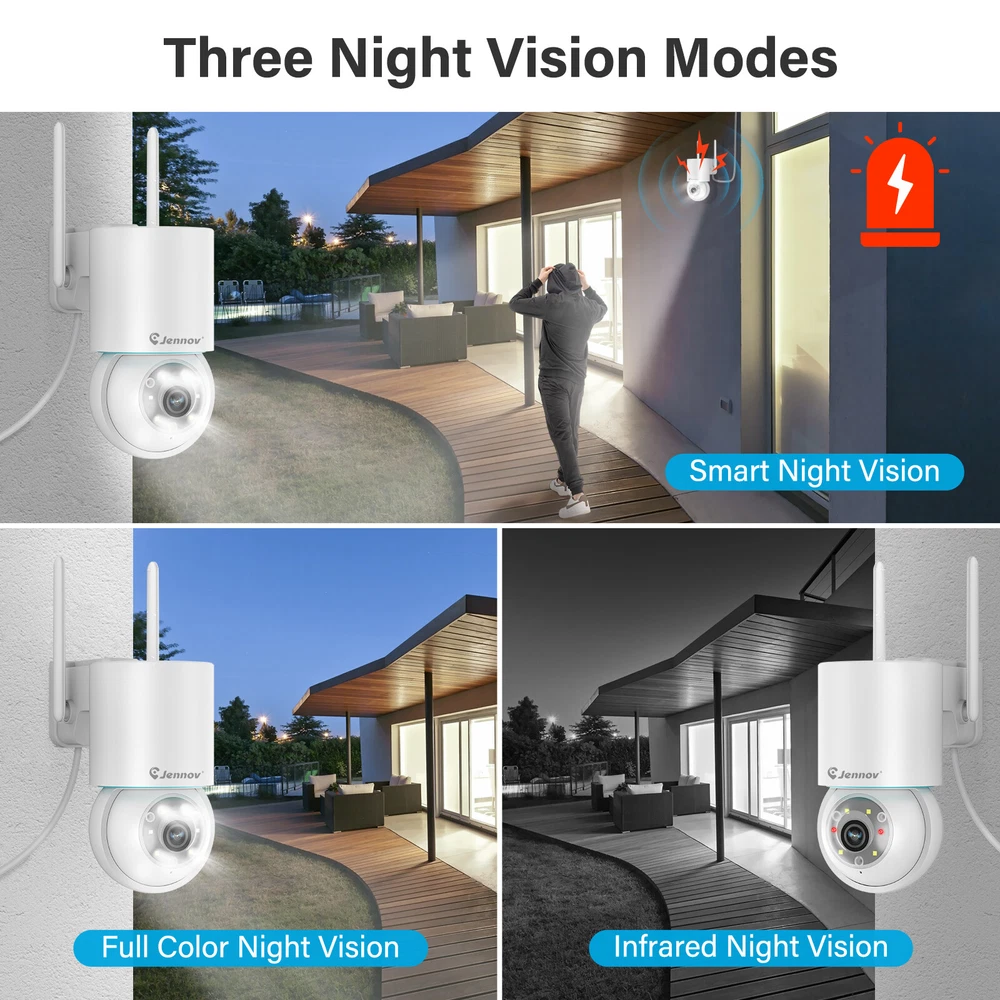 Any questions please feel free to contact us at any time. Quick Reply. The power cord is 1 metre by default, if you need an extension cable please contact us, we can give you an extension cable NVR can connect up to 10 cameras What's in the box? Cameras and NVR change according to the set you choose, while power adapters, waterproof covers, and screws get a corresponding quantity 5MP Clear Vision, Day or Night 5MP super HD, even in the darkest nights. Benefit from infrared night vision that reveals details up to 100ft away, featuring professional optical lenses for vivid colors and fine image quality. Human Motion Detection & Real Time Alerts The System can reduce false alarms with a human filtering function and receive instant alerts on your phone when motion is detected. Alert notifications will be sent to your phone immediately if human motion is detected. It supports adjusted sensibility to ensure you won't be disturbed by frequent alarms. 2-Way Audio Talk The wireless security camera system comes with advanced noise-filtering microphone and speaker, ensuring clear and fluent voice communication between the app and the cameras. No matter where you are, you can easily share joy with your kids or interact with your pet. It also allows you to keep unwelcome guests at bay Three Recording Modes Save time and effort over general motion detection. You can also set and apply timed recording or 24/7 recording as needed. EseeCloud Intelligent Playback also makes it easy for you to quickly view each event. Works with Alexa This security system is able to work with Amazon Alexa, allowing engaging voice control to take a glance at your rooms or yards. Auto Pairing and WiFi Repeater Once connected to power, the Wi-Fi cameras will pair with the NVR automatically without any manual setting. The nearest wifi-connected camera can serve as a repeater to bolster the connection distance. Multiuser and Smartphone Online at the Same Time This WiFi camera system supports users online at the same time. If you connect it to your home WiFi network, you can access it remotely via your phone (supports both Android and IOS). You can check the real-time status anywhere and anytime. H.265+ Video Compression,More Save HDD Space Saving up to 50% of storage space than H.264 coding without losing 5MP clarity. You will enjoy smooth & fast live stream without latency. Free Local & Cloud Recording 1TB HDD stores months of video before overwriting old files. Or pay for a paid order cloud storage service and don't worry about hard drive damage and lost playback footage. NVR supports hard drives up to 6TB (not included) NVR Multi-Language Support The NVR support 11 languages ,English Korean, Japanese, Portuguese, Spanish, German, etc. NVR (without monitor) Video & Audio Video Compression: H.265+ / H.264+ IP Video Input 10 CH Video Output HDMI / VGA Audio Output Support 3.5mm Audio Cable Max Playback Channel 4 CH Hard Drive HDD 1 SATA Interface Supports up to capacity Up to 6TB Capacity External Interface Network Interface RJ45 X1 Wireless Antenna 2 Ports (IEEE802.11b/g/n) USB 1X USB 2.0 WiFi 2.4 GHz (Built-in Antenna) General Housing Metal+Plastic Operating Power DC 12V Power Consumption 6W (Without HDD) Working Temperature 14 °F ~ 131 °F/-10 °C ~ 55 °C PTZ Camera Camera Video Pixels 5MP Image Sensor 1/2.8" Progressive Scan CMOS Audio Compression G.711A Video Compression H.265+ Lens 2.8mm Angle of View 110° Audio Input/Output Build in microphone & speaker, support 2 way audio Number of Infrared LEDs 2 Night Vision Distance Up to 100 ft/30 m IR-Cut Filter Yes Ethernet RJ45 X1 General Wireless IEEE802.11b/g/n Housing Plastic Operating Temperature 14 °F ~ 131 °F/-10 °C ~ 55 °C Operating Power DC 12V Applicable Scenarios Indoor/Outdoor Weatherproof Rating IP66 If you'd like to buy other J Series add on camera, you can click on the link below or search for them in the store! https://www.ebay.com/itm/116217725838 (A95) https://www.ebay.com/itm/355819262950 (A61) https://www.ebay.com/itm/355877289316 (P41) P41 A61 A95