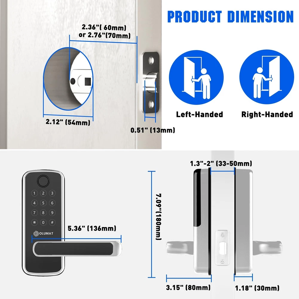 Smart Lock [8-in-1 Keyless Entry Door Lock] Fingerprint + Passcode + Fob + Wireless Fob + Smart + Physical Key + Auto Lock +Time Pin Code. Never worrying about forgetting keys and lock yourself out. [Homeowners & Rental Hosts] smart door lock is a great solution for Airbnb short-term rentals, rental property management and self-housing residents. Generate passcodes remotely and share with your visitors. [Easy installation] This code door lock is a perfect fit for most American front doors. Easy to install in minutes with just a Philips screwdriver. No extra drilling or wiring required. No locksmiths needed. The door handle can be reversible for both left and right handed doors. [Remote control / Wifi door lock]] Pair with a WiFi gateway (Optional accessory, sold separately), you can lock/unlock your smart door lock anytime anywhere, remotely set up door codes and view real-time access log. [Stylish and Guaranteed] The App / Software is free to use forever. No charges or long-term costs. 30-day money-back , 1-year product and customer support following the date of purchase.