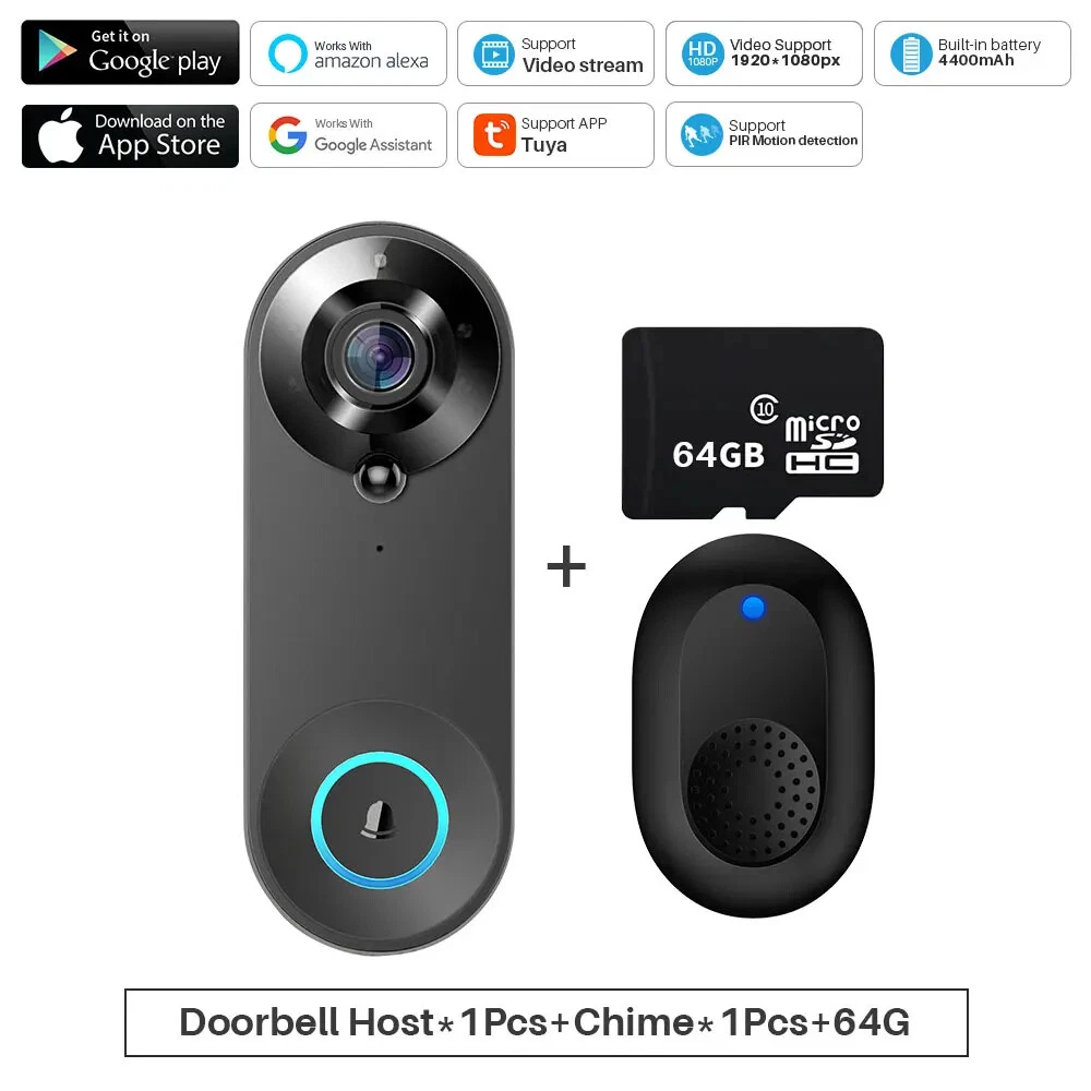 WiFi Wireless Door Bell Camera 1080P Two-Way Video Intercom Door Smart Life