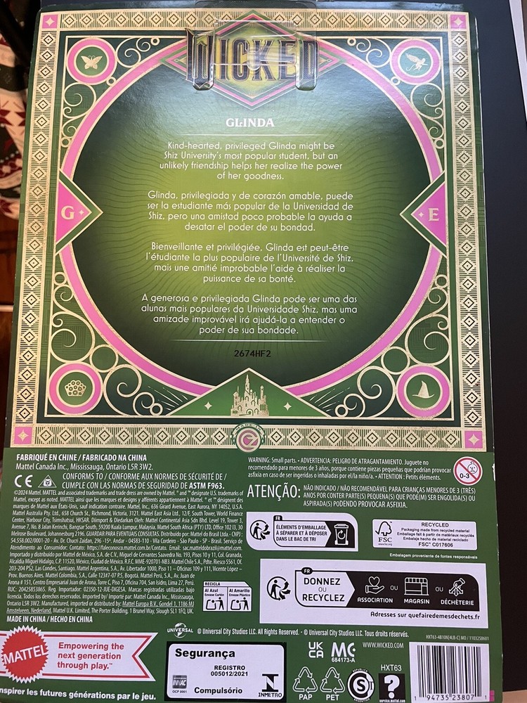 Mattel Wicked Movie Glinda Fashion Doll + Parts - URL MISPRINT Wicked.com. Condition is New. Shipped with USPS Ground Advantage.