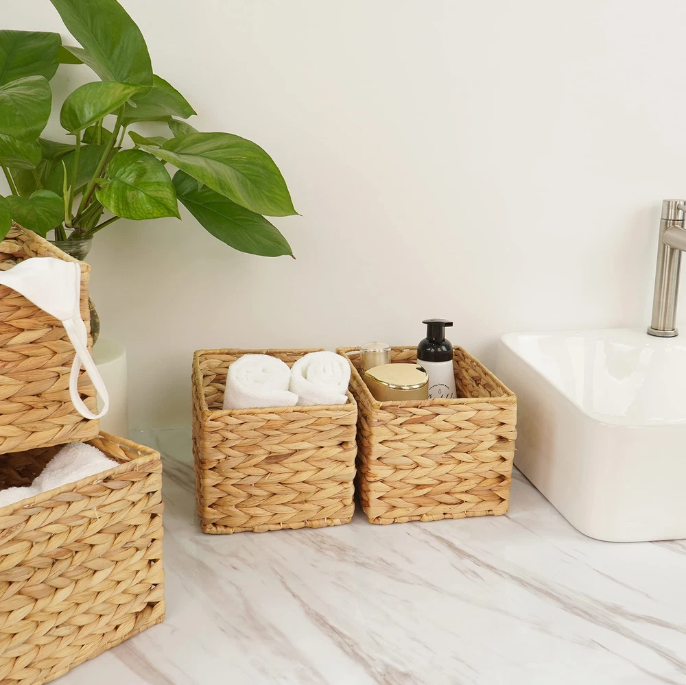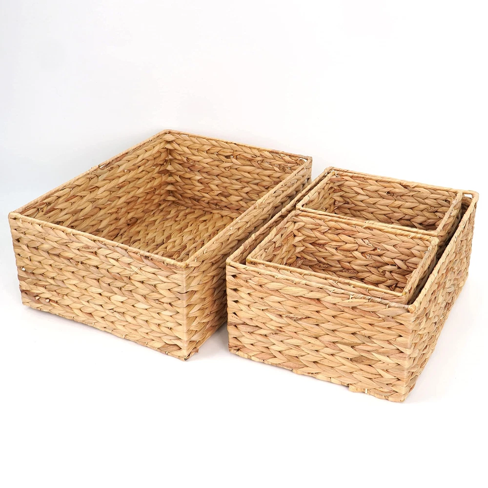 Wicker Basket Organizer Rectangle Water Hyacinth Storage Baskets Set Of 4 Organi
