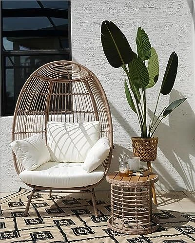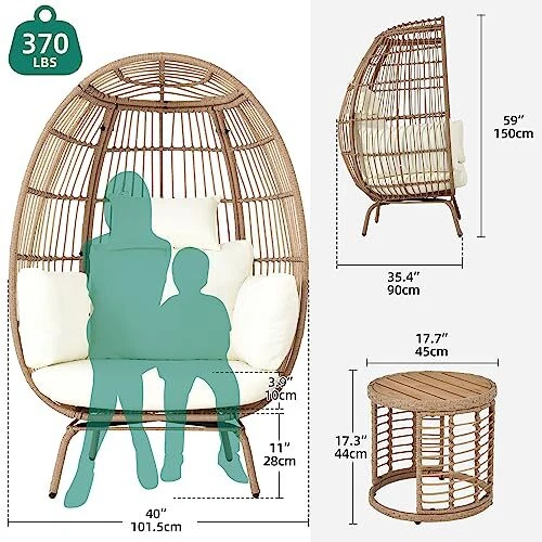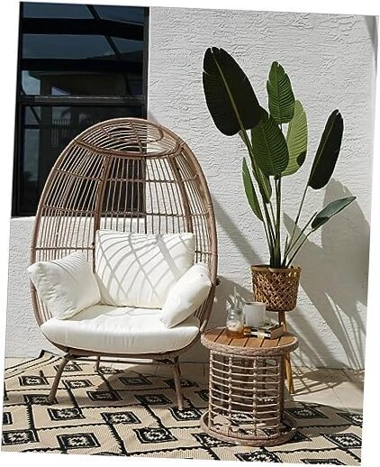 Return Policy Fast Delivery Trusted seller Wicker Egg Chair with Coffee Table, Outdoor Indoor Egg Shaped Chair, 626lbs Capacity Oversized Basket Chair Set with Side Table, Cushions (Beige) Product Description Unmatched Comfort for Relaxation: Sink into unparalleled comfort with this basket chair, featuring plush padded cushions, lumbar support, and a headrest pillow. Whether you're curling up with a good book or simply unwinding in style, this chair offers the perfect spot for solo relaxation. Elegant & Practical Coffee Table: Elevate your outdoor space with this chic round wicker coffee table. Crafted from high-quality PE rattan with a weather-resistant faux wood top, it’s both stylish and durable. Perfect for outdoor use, it’s also easy to clean, ensuring it remains a beautiful addition to your setting. Robust & Supportive Design: Built to last, this egg chair features a sturdy black powder-coated frame and a four-legged base, providing a stable and secure lounging experience. With a weight capacity of up to 370 lbs (chair) + 256 lbs (coffee table), it can comfortably support you and your guests. Easy Assembly & Maintenance: Assembly is a breeze with all necessary accessories, hardware, and a detailed manual included. Two people can set up this set in just 10 minutes. The removable cushion covers make cleaning simple, keeping your egg chair looking fresh and inviting at all times. Versatile Indoor/Outdoor Use: egg chairs are designed to enhance any space, whether it's outdoors in your garden, porch, patio, or pool area, or indoors in your living room or bedroom. They bring a relaxed bohemian vibe to any environment, making them a versatile and stylish choice for your home. Shipping Returns Payment Shipping Shipping is FREE to all addresses other than APO/PO boxes in the lower 48 states. All our stock ships from US-based warehouses. Shipped via USPS or UPS (depending on location and package weight) Unless stated otherwise, all orders will ship within 24-72 hours of your payment being processed. Check our feedback to see the great reviews of FAST shipping we offer. Returns Seller does not accept returns Payment We currently accept payment via eBay managed payments only. Once payment is cleared, we will dispatch your shipment within 1-3 business days. Please refer to the "Shipping" tab for more information regarding shipping speed to your destination.
