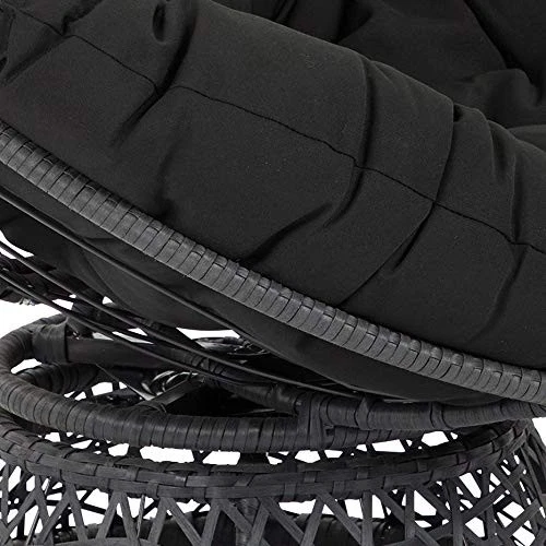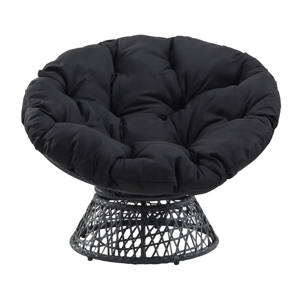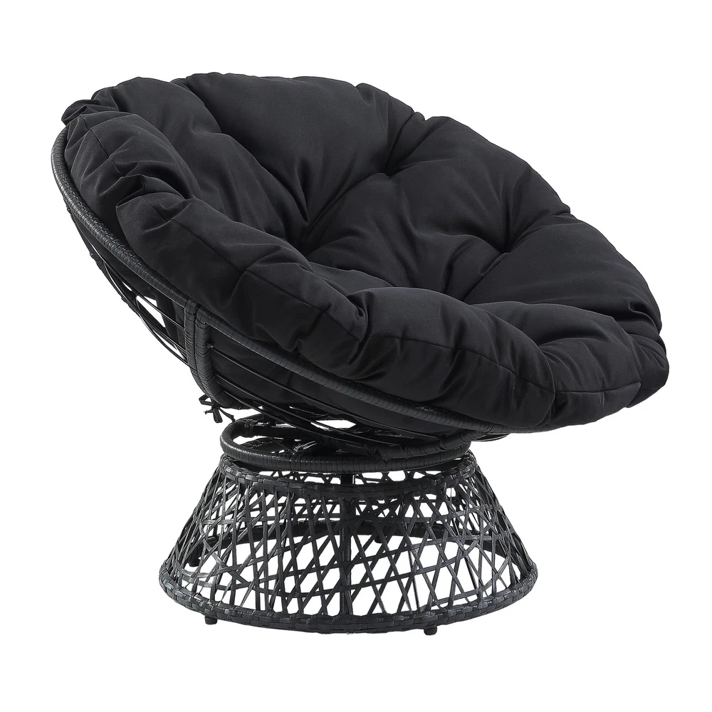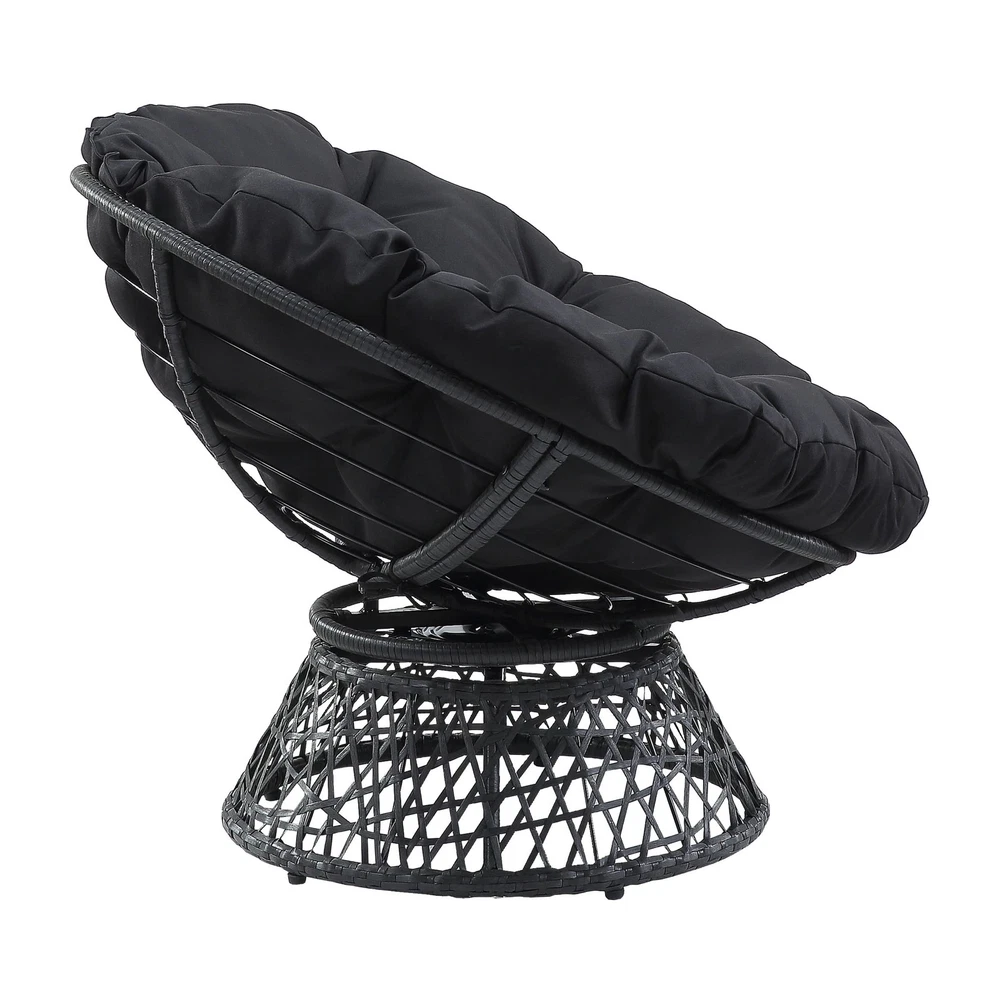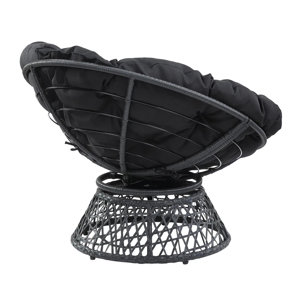 Wicker Papasan Chair with 360-Degree Swivel, Grey Frame with Black Cushion