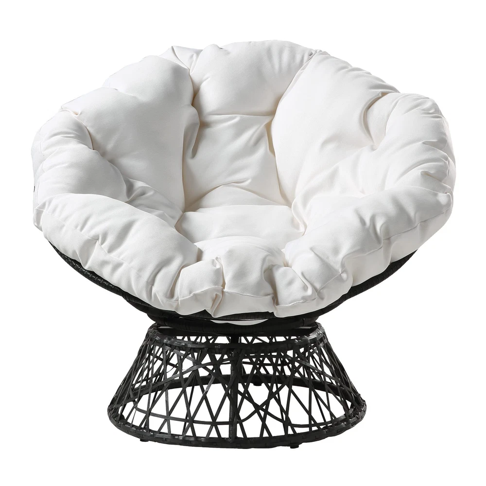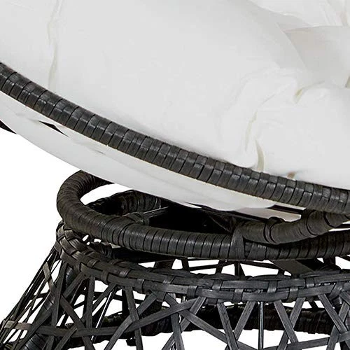 Create a laid back vibe in your home with our twist on the classic papasan chair design. Nest into the generously large Dacron-filled cushion. Enjoy the boho styling of our durable resin wicker wrapped over a metal frame. Complete with a 360° swivel to twist and turn to your heart’s content. Tune in to a time when listening to your favorite albums and sipping on a cool, refreshing drink was your only ambition for the day. Add a bit of fun to your living room, family room or dorm with our easy, casual Papasan Chair. Available in several exciting colors and finishes. Durable, well built and just plain fun! Enjoy the boho styling of our papasan chair made with durable resin wicker wrapped over a metal frame. Lounge and twist and turn to your heart’s content with virtually frictionless 360 degree swivel. Nest and relax into the generously large high quality soft Dacron-filled button tufted cushion. The seat cushion is easy to remove dust and debris since it is tied on the frame by straps. Overall Size: 40” W x 36” D x 35.25” H; Seat Size: 40” Diameter x 4.5” T; Back Size: 40” W x 18” H x 4.5” T