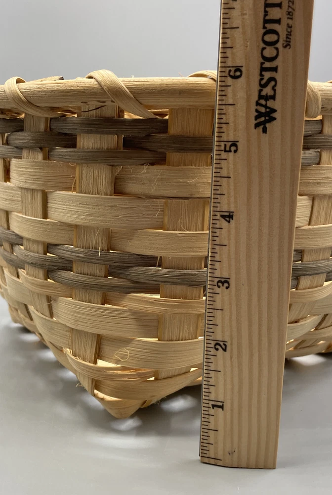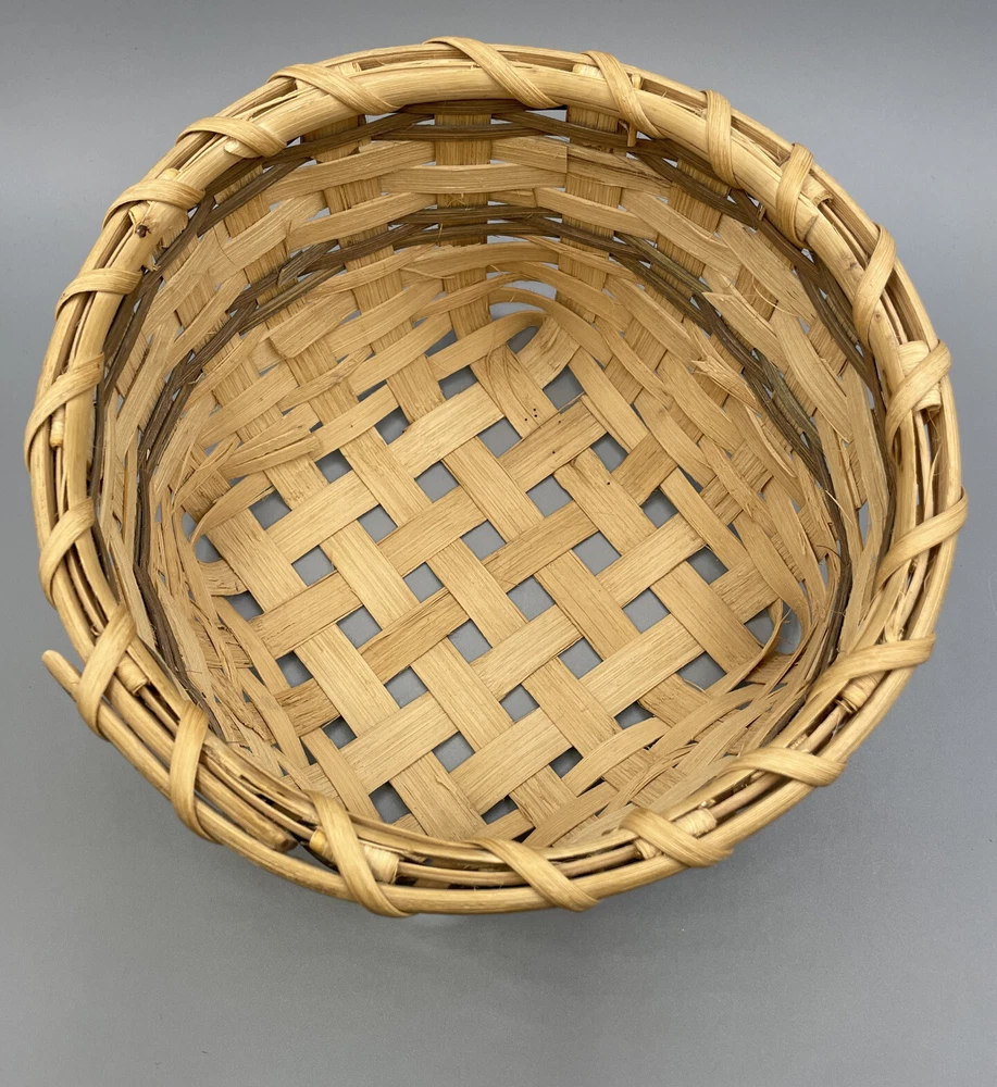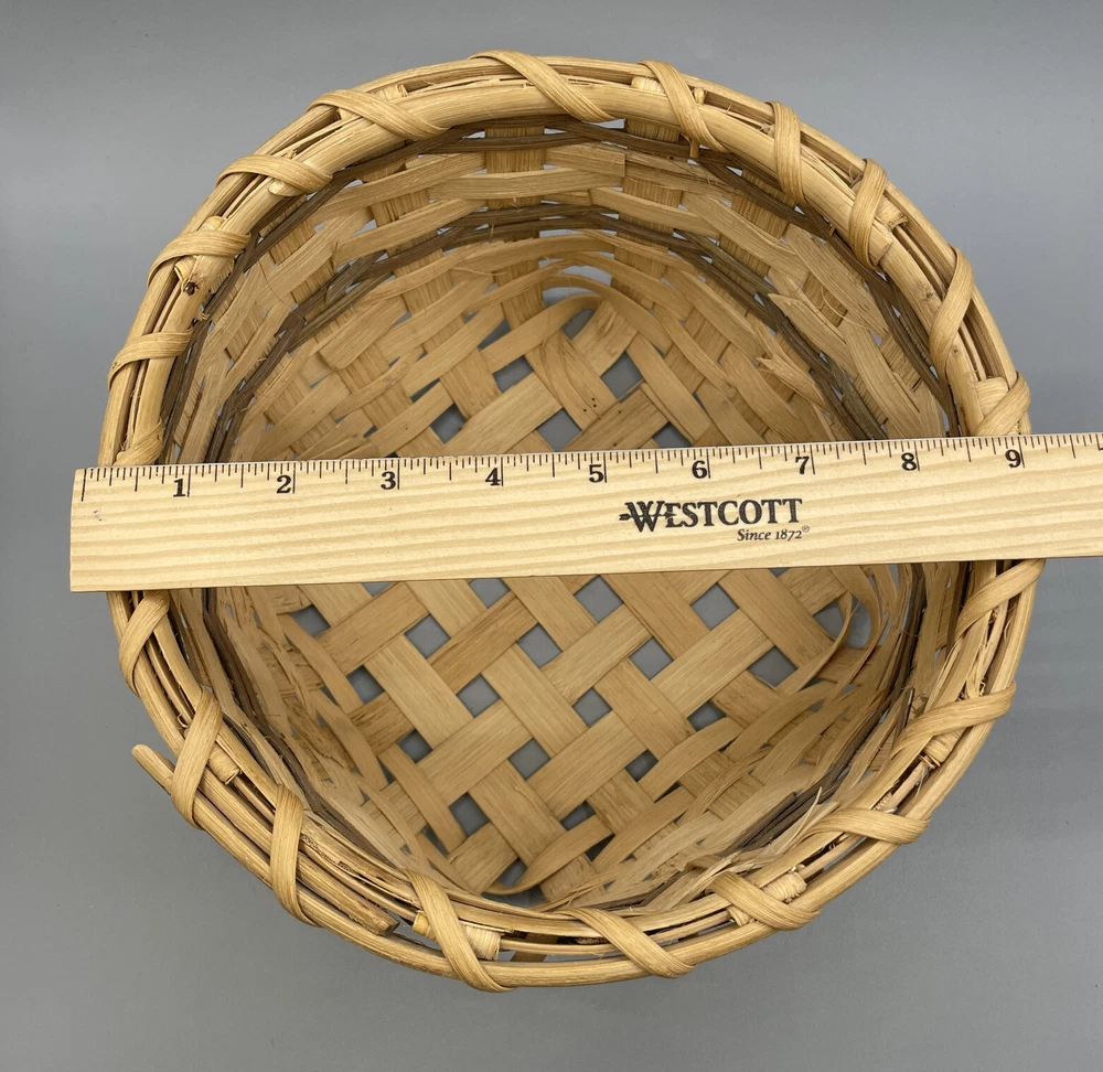 This vintage wicker storage basket is a beautiful addition to your collection. With a diameter of 9 inches and a height of 6 inches, it is perfect for all occasions and can be used for storage or as a decorative item. The basket has a traditional style and is made with rattan and wicker materials. The beige color and natural finish gives it a unique look, while the bamboo fill material adds to its durability. This storage basket is perfect for adults and can be used indoor. It is a great item for collecting or as a gift.