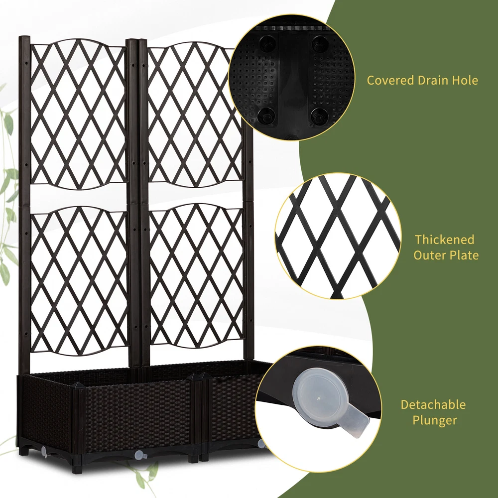 listing template VISIT OUR STORE SIGH UP FOR EMAIL Wicker Trellis Planter, Outdoor Raised Garden Bed Wicker Trellis Planter, Outdoor Raised Garden Bed with Drainage Holes, Free-Standing Trellis Planter Box for Vine Climbing Plants and Flowers in Garden Patio Balcony, Brown Introductions: Enjoy a beautiful, organized, and thriving garden with this versatile and stylish trellis planter. Perfect for vine plants, flowers, or lush greenery, it brings both elegance and practicality to any space! This freestanding garden bed is constructed from premium UV-resistant wicker, designed to withstand the elements while offering durability and style. With a built-in trellis, it provides essential support for climbing plants, flowers, or lush greenery, transforming your patio, balcony, or garden into a stunning floral oasis. Its thoughtfully designed planter box features built-in drainage holes for optimal plant health, preventing waterlogging and ensuring your plants thrive. Features: 1. Durable & High-Quality Construction: Crafted from UV-resistant wicker, this trellis planter is built to last, ensuring you can enjoy its beauty and functionality in both outdoor and indoor settings for years to come. The sturdy materials withstand the elements, making it ideal for various climates. 2. Efficient Drainage System: Equipped with multiple drainage holes, the planter box ensures excess water escapes efficiently, protecting your plants from waterlogging. The 7.1 inch deep planting bed provides ample space for roots to grow, fostering healthy and lush vegetation. 3. Optimal Size for Versatile Use: Measuring 31.5 x 15.7 x 48.2 inch overall, this planter strikes the perfect balance between size and utility. It accommodates a generous amount of soil and plants while the integrated trellis, measuring 31.1 x 1.2 x 39 inch, supports climbing vines and flowers, adding vertical greenery to your space. 4. Multi-Functional Garden Solution: Use it as a privacy screen, a decorative garden feature, or a practical raised bed for your favorite climbing plants. The trellis aids in vertical plant growth, creating a captivating green wall that beautifies and enhances any setting. 5. Hassle-Free Assembly: Setting up your new planter is quick and simple, thanks to the included complete installation instructions and all necessary hardware. Specifications: 1. Material: Plastic 2. Overall Dimensions: (31.5 x 15.7 x 48.2) in / (80 x 40 x 122.5) cm 3. Interior Planter Box Dimensions: (29.9 x 14.2 x 7.1) in / (76 x 36 x 18) cm 4. Base Dimensions: (15.2 x 14.6) in / (38.5 x 37) cm 5. Support Leg Height: (1) in / (2.5) cm 6. Trellis Dimensions: (31.1 x 1.2 x 39) in / (79 x 3 x 99) cm Package Includes: 1 x Wicker Trellis Planter Shipping Policy 1. Ship worldwide from New Jersey by reliable shipping companies -- USPS, UPS, FEDEX, DHL, etc., and only to VERIFIED PAYPAL ADDRESS. Transport Delivery ETA. Package handling only takes 1 business day at our warehouse, so please make sure entering correct payment and shipping information before checking out. Once your payment is completed, we are not going to accept any more changes to your order. 2. International Buyers – Please Note: a. Import duties, taxes and charges are not included in the item price or shipping charges. These charges are the buyer's responsibility. b. Please check with your country's customs office to determine what these additional costs will be prior to bidding/buying. 3. Please check your shipping address carefully before checkout, it can't be changed if order completed. 4. Orders placed on weekend will be shipped within 2 days.Notification of shipment with tracking number will be sent to buyers. 5. Standard shipping: 2-7 business days Expedited Shipping: 2-3 business days One-day Shipping: 1 business day International shipping: Varies 6.Ship within 1 business day once payment completed. Notification of shipment with tracking No. will be sent to buyer. 7.We offer discounts for combine shipping. Please contact us first if you need combine shipping, and an invoice with discount will be sent to you. 8.Please allow 5 business days for delivery to US destinations on any eBay orders and 14 business days for delivery to any International destinations. We highly recommend our buyer choose priority/expess mail for international delivery which is much more stable. Return Policies 1. Refunds given only if item DOA and cannot be replaced via PAYPAL . If so, Please contact us with 5 days since you receive the item and and return to us within 30 days from the delivery date for exchange or refund. 2. If you need return, please contact our customer service representative, let us know the detailed problem and send us some pictures for confirmation. Payment Payment should be sent within 8(EIGHT) days of auction closing. Feedback If you are dissatisfied for any reason, please do not be quick to leave negative/neutral feedback. We work hard to make sure EVERY CUSTOMER 100% SATISFIED and resolve any problem for you. Work Time Work Time: Monday to Saturday About Us | Newsletter| Feedback| Contact Us Copyright © 2022 LikeDeal. All rights reserved. 无标题文档 Wicker Trellis Planter, Outdoor Raised Garden Bed Wicker Trellis Planter, Outdoor Raised Garden Bed with Drainage Holes, Free-Standing Trellis Planter Box for Vine Climbing Plants and Flowers in Garden Patio Balcony, Brown Introductions: Enjoy a beautiful, organized, and thriving garden with this versatile and stylish trellis planter. Perfect for vine plants, flowers, or lush greenery, it brings both elegance and practicality to any space! This freestanding garden bed is constructed from premium UV-resistant wicker, designed to withstand the elements while offering durability and style. With a built-in trellis, it provides essential support for climbing plants, flowers, or lush greenery, transforming your patio, balcony, or garden into a stunning floral oasis. Its thoughtfully designed planter box features built-in drainage holes fo