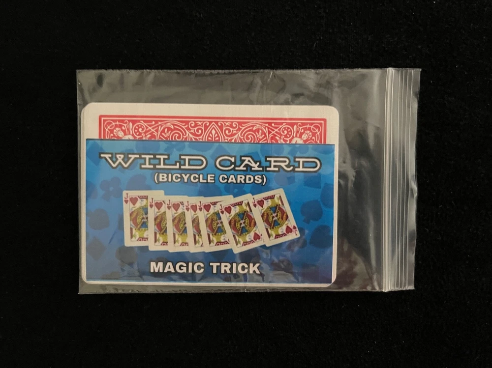 Wild Card is a classic magic trick that is now available in red backed bicycle playing cards. The magician displays seven cards, six of which are identical, and one differing "Wild Card." Three of the identical cards are dealt face down, while the other three matching cards are dealt face up, leaving the lone Wild Card in the magician's hand. By merely touching the Wild Card to each of the six identical cards, all six transform into exact duplicates of the lone Wild Card. You will receive a total of seven cards that are all that is needed to perform this classic magic trick as well as a tutorial video that teaches you the classic way on how to perform Wild Card and an additional way on how to perform Wild Card with only four cards. These cards are all made by The United States Playing Card Company, the same company that makes Bicycle playing cards and are red backed and the value of the faces is random.