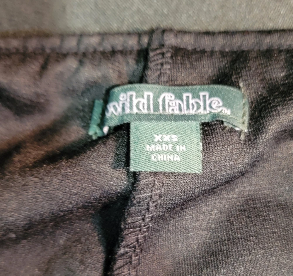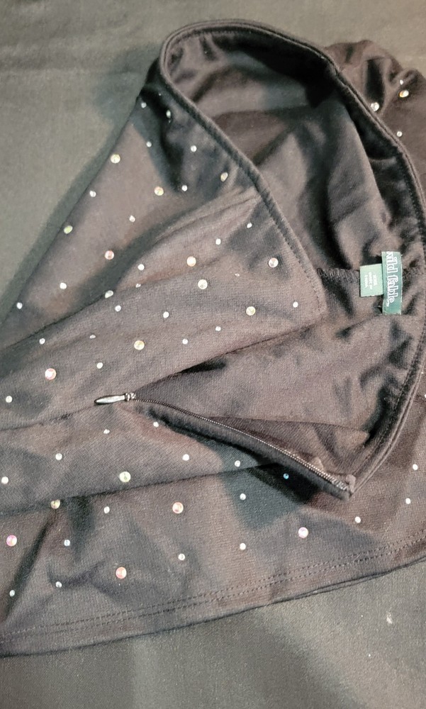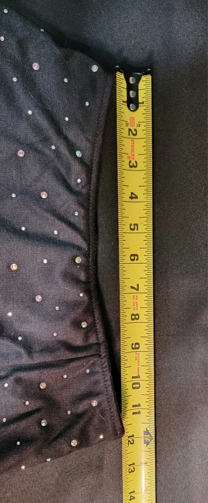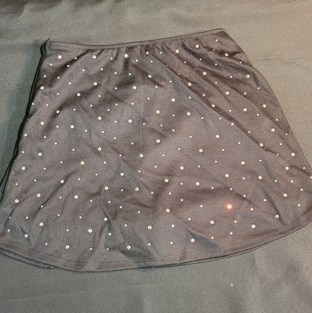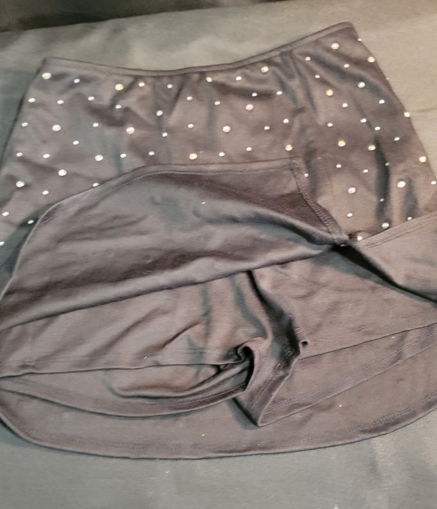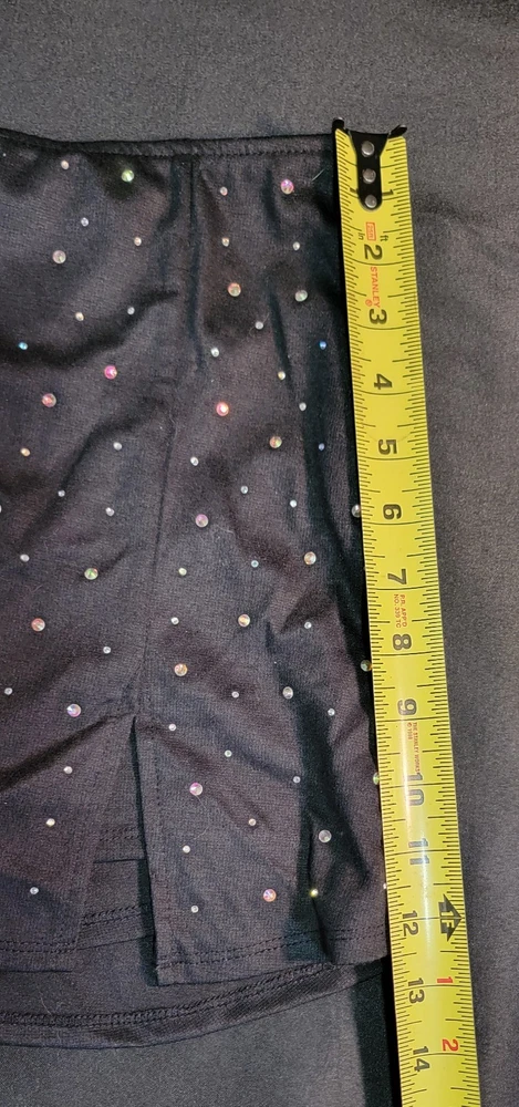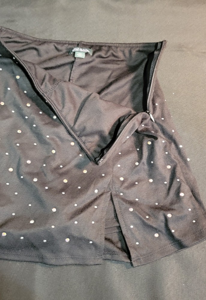 Add some sparkle to your dance moves with this Wild Fable knit tennis mini skort. The skort features an zippered waist with rhinestone accents and a side slit for a comfortable and secure fit. The skirt is made of a lightweight and stretchy material, perfect for high-speed dancing and movement. The black skirt is adorned with a solid pattern and has a short length, making it perfect for travel and casual occasions. It is machine washable and easy to care for. This skirt is an excellent addition to your wardrobe, and it will help you stand out at any festival, beach party, or American music event. Measures Approximately 12" from side seam to side seam 12.5" from waist to hem See pictures for details