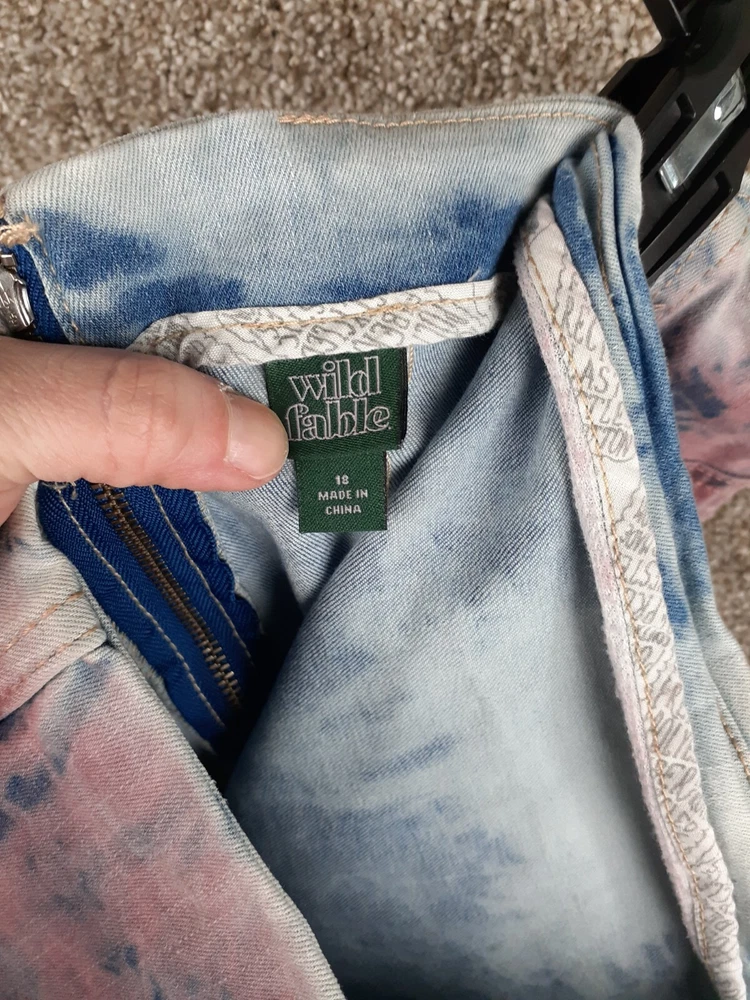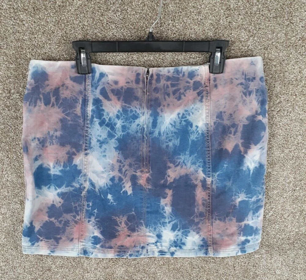 Size Type: Regular Style: Mini Size: 18 Personalize: No Occasion: Business, Casual, Party/Cocktail, Travel, Workwear Department: Women Pattern: Tie Dye Season: Fall, Spring, Summer, Winter Features: All Seasons, Stretch Material: Cotton Blend Color: Multicolor Type: Skirt Theme: 90s, American, Classic, Designer, Hipster, Modern, Rainbow Brand: Wild Fable Closure: Zip Handmade: No Skirt Length: Short Fabric Type: Denim