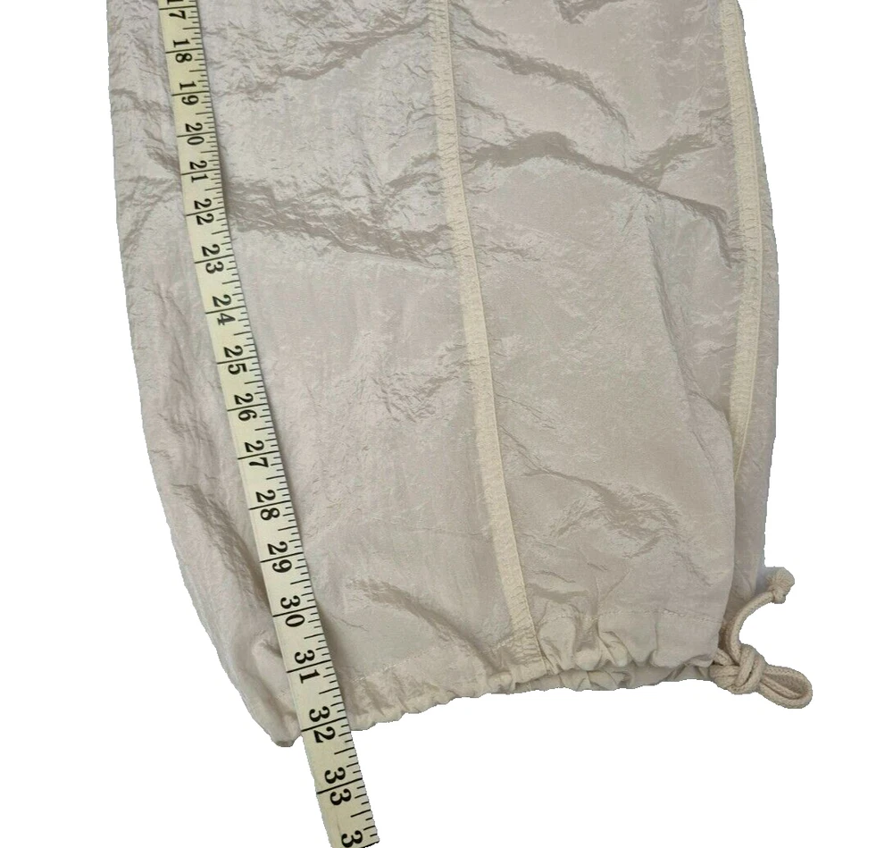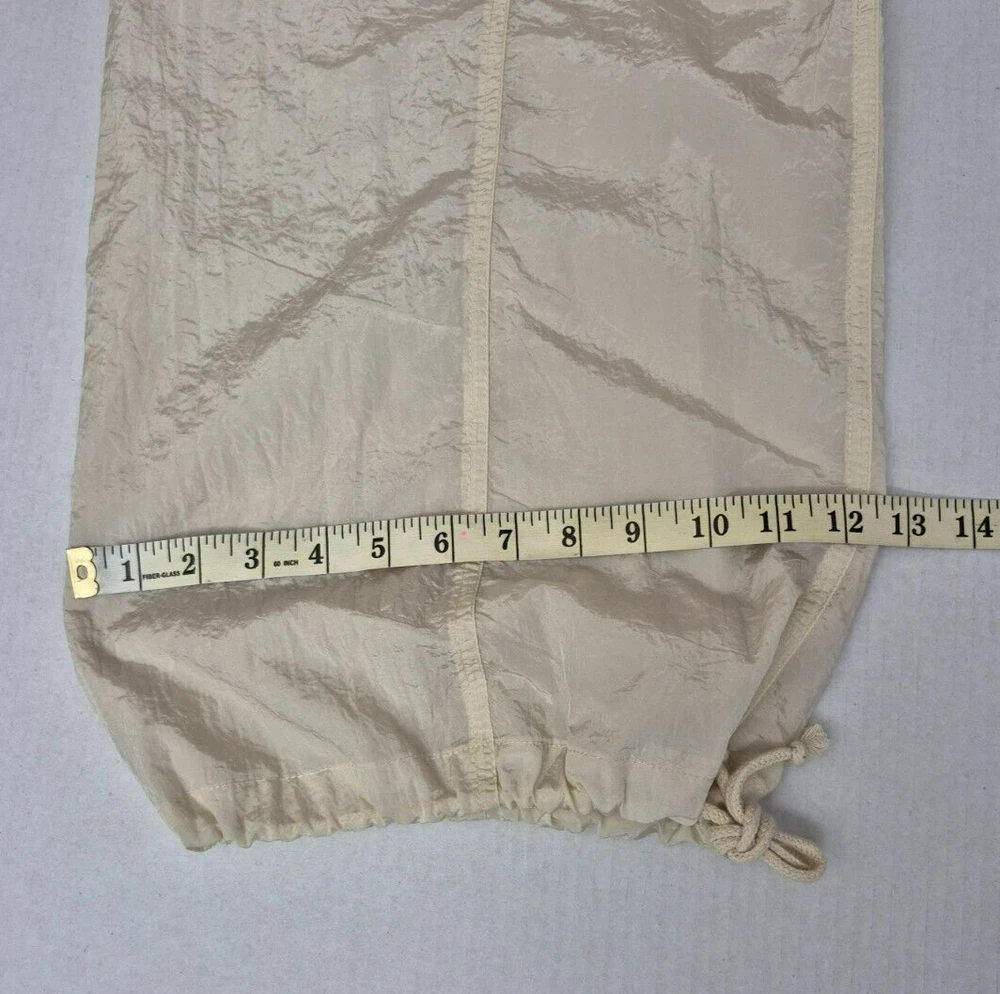 Wild Fable Women's High Rise Wide Leg Parachute Pants Light Beige Large - New Made from nylon and polyester lining, with an adjustable drawstring waist and elastic back for a relaxed fit. The pants have a high rise and wide leg silhouette, perfect for casual, party or travel occasions. With details like two deep pockets in front and a back pocket with velcro closure. Adjustable ankle cuffs, these pants offer style and functionality. The fabric type is taffeta, making them suitable for various seasons like winter, summer, fall and spring. NOTE: Please see the images to verify your purchase. Color may differ slightly due to lighting and screen quality. From a smoke-free, pet-free home. Please contact us if you need additional images or information to make your purchase. If you are happy with your transaction, please leave us a Positive Feedback. If you have any problems with your order, please contact us.