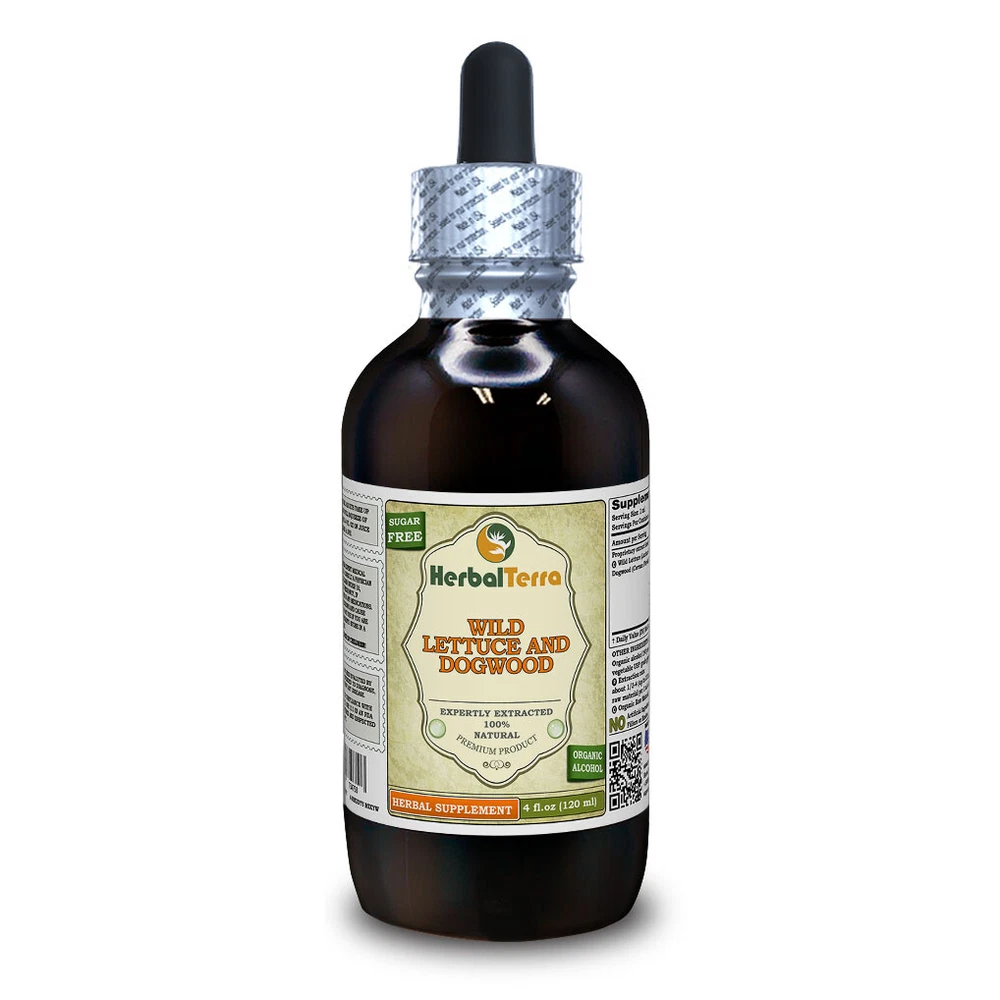 Wild Lettuce And Dogwood Tincture, Liquid Extract. Fosterss relaxation and calmness, alleviates stress and tension, supports a sense of well-being, and encourages a tranquil state of mind. Experience Calmness with Wild Lettuce and Dogwood. Embrace tranquility and relaxation with our Wild Lettuce and Dogwood herbal blend. This unique combination of Wild Lettuce Herb and Dogwood Bark offers a natural way to unwind and soothe the mind and body. Wild Lettuce, scientifically known as Lactuca Virosa, has long been cherished for its calming properties. It contains compounds that are believed to promote relaxation and alleviate tension. Research suggests that Wild Lettuce may have mild sedative effects, making it a valuable herb for those seeking to ease stress and promote a sense of calmness. Dogwood, or Cornus Florida Bark, is another traditional herb with calming properties. Rich in beneficial compounds, Dogwood has been used for centuries to support relaxation and ease nervousness. Studies have shown that Dogwood may help reduce anxiety and promote a sense of well-being, making it an excellent addition to any relaxation blend. By combining the soothing properties of Wild Lettuce and Dogwood, our herbal blend offers a gentle yet effective way to promote calmness and relaxation. Whether you`re looking to unwind after a hectic day or seeking relief from occasional stress, Wild Lettuce and Dogwood blend is here to help you find peace and serenity. We produced this extract using a cold maceration method of extraction to ensure that the broad spectrum of therapeutic plant compounds - vitamins, minerals, alkaloids, flavonoids and other active constituents of the herbs are fully extracted and maintained. Expertly extracted under strict quality standards and procedures. We meticulously produce our extracts according to precise standards where each herb is extracted according to the distinct characteristic of each plant! Super concentrated Wild Lettuce And Dogwood tincture: dry plant material / menstruum ratio is 1:3! Extraction rate: 1 ml of extract is equal to about 330 mg of dried herb! We produce our liquid extracts using ONLY natural ingredients! All herbs are organically grown, ethically wild harvested, or selectively imported. Our extracts do not contain GMO, gluten, artificial colors, heavy metals, preservatives, pesticides or fertilizers! Proudly made in the USA in an FDA registered facility under srtict laboratory control. Made in an FDA registered facility. Proudly made in the USA. These statements have not been evaluated by the Food and Drug Administration. This product is not intended to diagnose, treat, cure or prevent any disease. Actual product packaging and materials may contain more and different information than what is shown on our website. We suggest consulting with a physician before using this or any other herbal supplements. Made in a FDA registered facility. Keep out of the reach of Children. Not to be used during pregnancy. Consult a physician before using if nursing or taking any medications. Do not use if you are allergic to any ingredients. Do not use if seal is broken or missing. Store in a cool dry place.