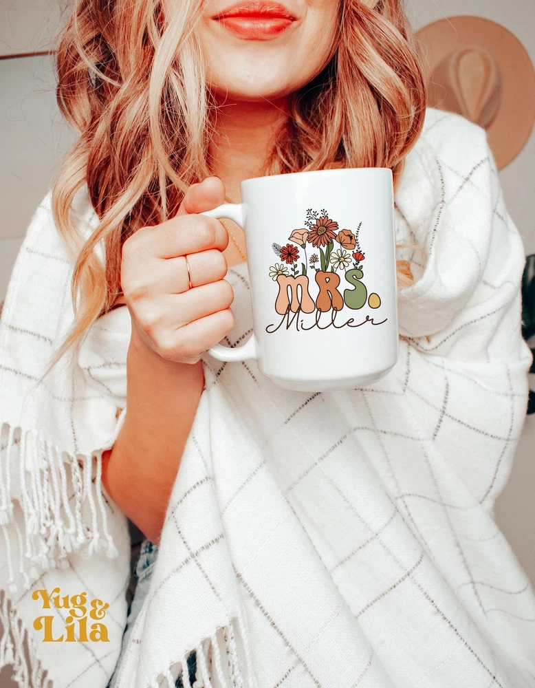 Wildflowers Mrs Mug Personalized Mrs Gift Bride To Be Gift Mug Custom Gift For Bride Mug Wedding Gift Bridal Shower Gift Bridal Gift Product Details.. This high quality 11oz. ceramic white mug has a premium hard coat that provides crisp and vibrant color reproduction sure to last for years. Perfect for all hot & cold beverages. The highest quality printing possible is used. It will never fade no matter how many times you wash it. Material: 100% Ceramic. Print both sides. Dishwasher and Microwave Safe. High Gloss + Premium White Finish. Printed in the U.S.A. Personalized & Custom. We support personalized and custom mug to add custom, when placing an order, you can add notes to the "order note" in shipping address section. Also you can contact us directly via message. Shipping Info. Ready to ship in 1 to 2 business days, All products are made-to-order and proudly printed in the United States. Shipped by USPS and DHL, You will receive your order in 5-7 days. Replace & Refund. All products are defective during shipping broken, chipped will be replaced free of charge. You are not satisfied with the product, we will refund 100% money to you. If any other issues arise, please do not hesitate to message, we would be more than happy to assist you.