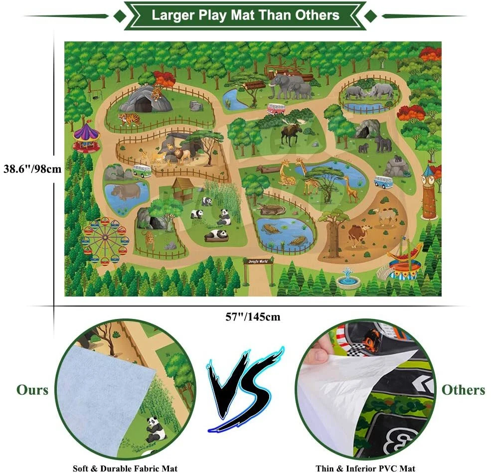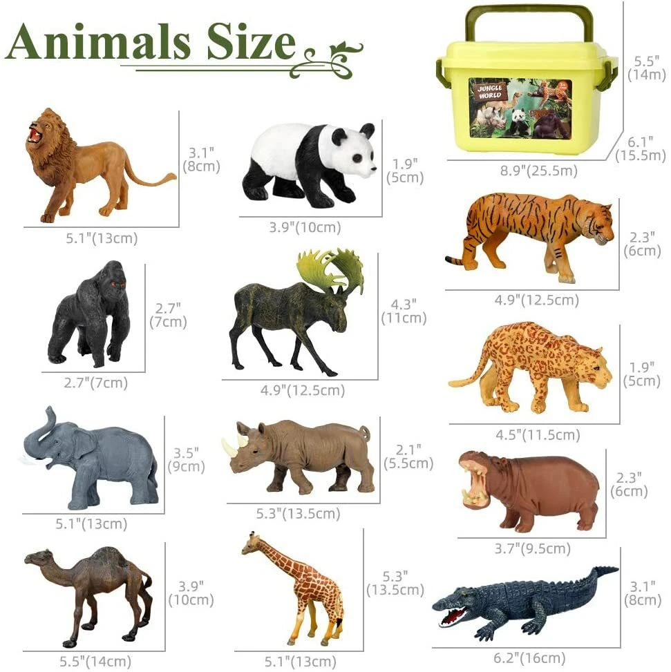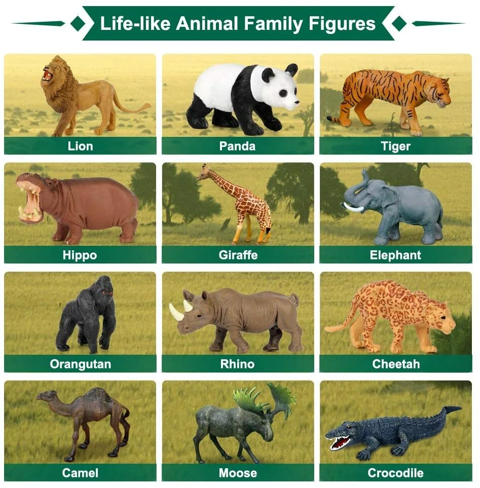 Wildlife Animals Action Figures Toys Playset With Activity Play Mat For Kids Toy FANTASTIC SAFARI FAMILY - In a remote African wild park. There lives fierce lion, gentle panda, brave tiger, big mouth hippo, tall giraffe, burly elephant, clever orangutan, strong rhino, swift cheetah, endurable camel, beautiful elk and scary crocodile. ULTIMATE REALISTIC ANIMALS TOYS - Every exquisite zoo animal figure play set is modeled from real wild animals toys figure. Every lifelike animal has its own unique posture. Made of non-toxic PVC, plus hand-painted make them more durable and realistic. LARGE animal figures of all types ensure safety for kids, eliminating choking. LARGER JUNGLE WORLD PLAYMAT - Compare with competition, our large zoo-themed rug is made of soft non-woven fabrics texture instead of thin PVC. Meantime, our 57” x 38.6” activity mat is more larger others. It can allow at 4 to 6 players to immerse in an intersting animal jungle world with clean and hygienic environment. EDUCATION AND DEVELOPMENT ZOO ANIMALS - Our realistic safari figurines set will spark your children's creative & imaginative play, and make away from electronics. Give them a chance to explore the origin and evolution of jungle wild animals and enjoy hours of fun learning the animals knowledge. MULTIFUNTIONAL OCCASIONS - All animals toys with playmat are placed in a durable storage plastic box with handle to keep organized. Great for birthday party favor, Christmas, holiday or impulse gift, landscape scenes, imaginative play, collection, and woodland baby shower party theme decor etc. It is convenient to play at home, outdoor or as an educational tool at school. Brand mini tudou Theme animal Vintage Yes Color Green Type Playset Character does not apply Franchise does not applydoes not apply Movie does not apply TV Show does not apply Material pvc Set Includes mat Grade 100 Original/Licensed Reproduction Original Certification Number does not apply MPN does not apply Professional Grader Action Figure Authority (AFA) Animation Studio does not apply Year Manufactured 2023 Occasion All Occasions Genre does not apply Convention/Event does not apply Features does not apply Time Period Manufactured 2020-Now