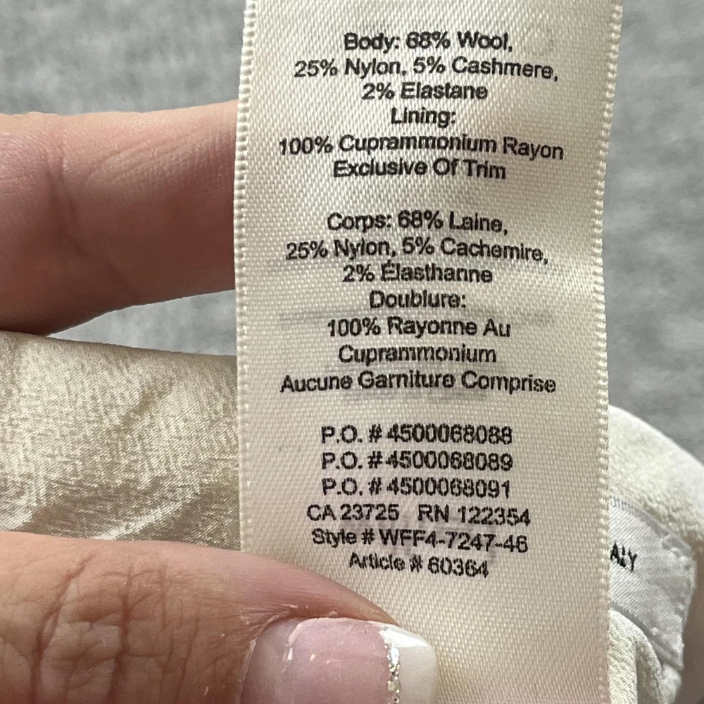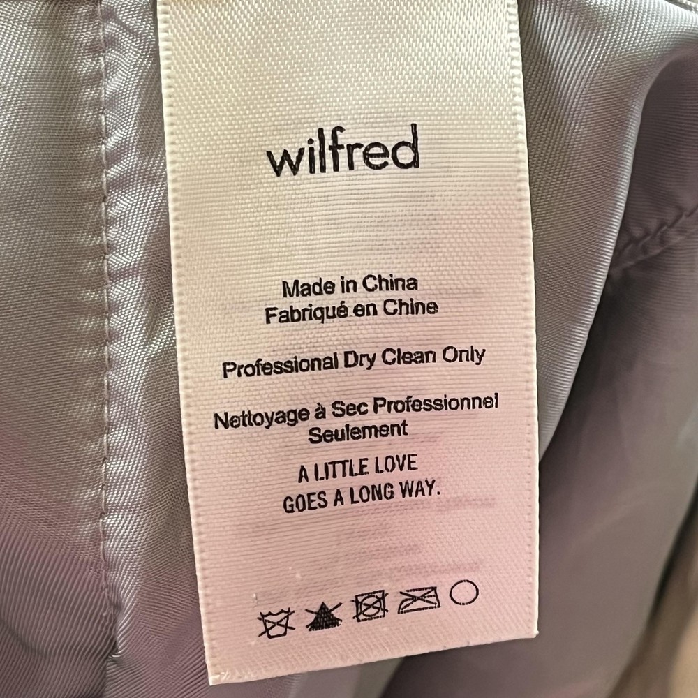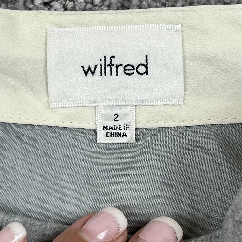 Brand: Wilfred (Aritzia) Item: Women's A-line skirt Color: Heather Gray Size: Womens 2 (per tag) Materials: Body 68% Wool, 25% Nylon, 5% Cashmere, 2% Elastane Lining: 100% Cupro (Cuproammonium Rayon) Fabric made in Italy; garment made in China Care: Professional dry clean only Closure: Back zipper Style code: WFF4-7247-46 | Article: 60364 Features: Soft wool-cashmere blend with slight stretch; fully lined for comfort; classic heathered finish Notes: All tag details shown in photos for verification.