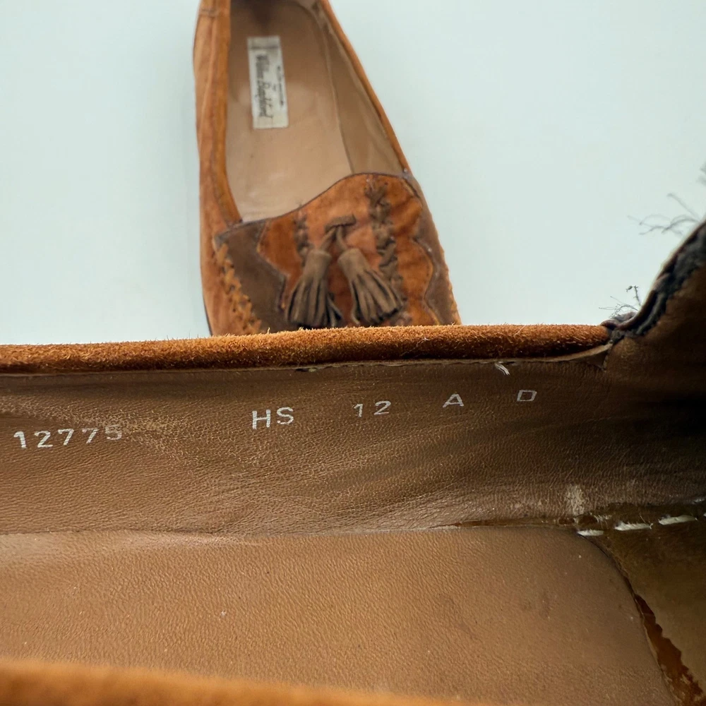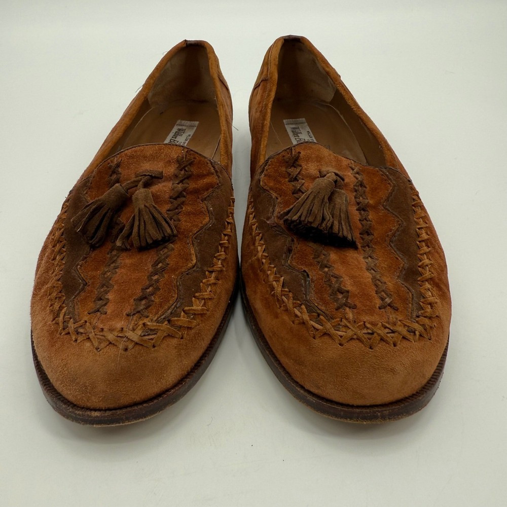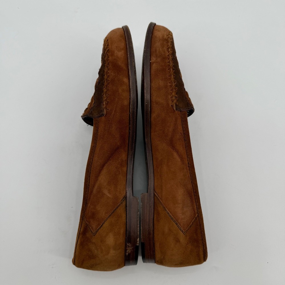 Please see photos for condition. Handsome suede leather loafers featuring a classic tassel design. These stylish shoes showcase a rich brown hue and intricate detailing along the upper. Crafted with quality and attention to detail, these loafers offer both comfort and sophistication. The design includes a traditional slip-on style, making them easy to wear for various occasions. Made in Italy, these shoes reflect a commitment to superior craftsmanship and timeless style. Color: Brown Department: Men Style: Loafer Upper Material: Suede Pattern: Solid Features: Comfort, Slip-On, Tassel, Made in Italy, Leather Lining Shoe Width: D Type: Dress Outsole Material: Leather Insole Material: Leather Model: Tassel Loafer Keywords: Wilkes Bashford, Wilson and Dean, Mens Loafers, Suede Loafers, Tassel Loafers, Brown Shoes, Leather Shoes, Slip On Shoes, Mens Footwear, Made in Italy, Designer Shoes, Classic Loafers, Vintage Loafers