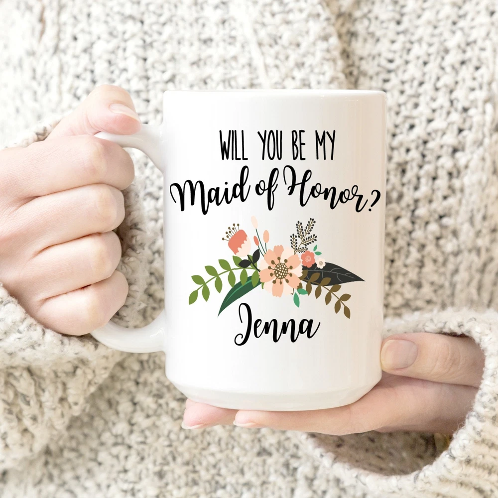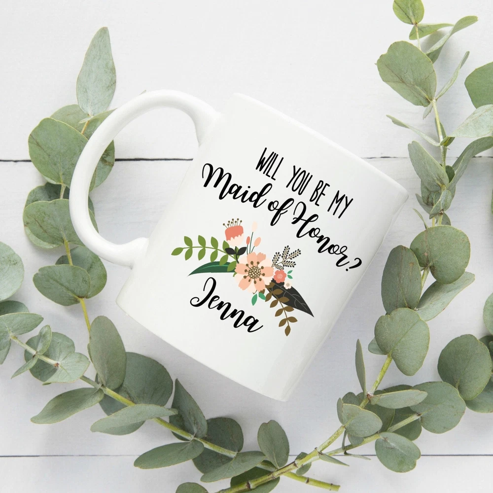 Will You Be My Maid Of Honor Coffee Mug Bridesmaid Gift Custom Wedding Favor Product Details.. This high quality 11oz. ceramic white mug has a premium hard coat that provides crisp and vibrant color reproduction sure to last for years. Perfect for all hot & cold beverages. The highest quality printing possible is used. It will never fade no matter how many times you wash it. Material: 100% Ceramic. Print both sides. Dishwasher and Microwave Safe. High Gloss + Premium White Finish. Printed in the U.S.A. Personalized & Custom. We support personalized and custom mug to add custom, when placing an order, you can add notes to the "order note" in shipping address section. Also you can contact us directly via message. Shipping Info. Ready to ship in 1 to 2 business days, All products are made-to-order and proudly printed in the United States. Shipped by USPS and DHL, You will receive your order in 5-7 days. Replace & Refund. All products are defective during shipping broken, chipped will be replaced free of charge. You are not satisfied with the product, we will refund 100% money to you. If any other issues arise, please do not hesitate to message, we would be more than happy to assist you.