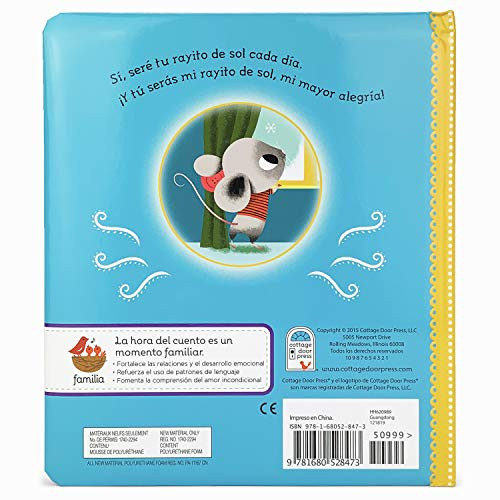 Language:SpanishBook Title:Tú serás mi rayito de sol? Will You Be My SunshinePublisher:Cottage Door PressFormat:Board bookNumber of Pages:18Author:Julia Lobo