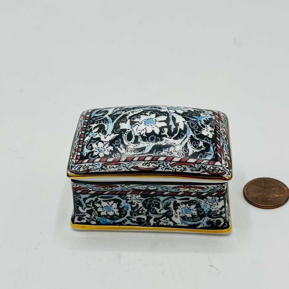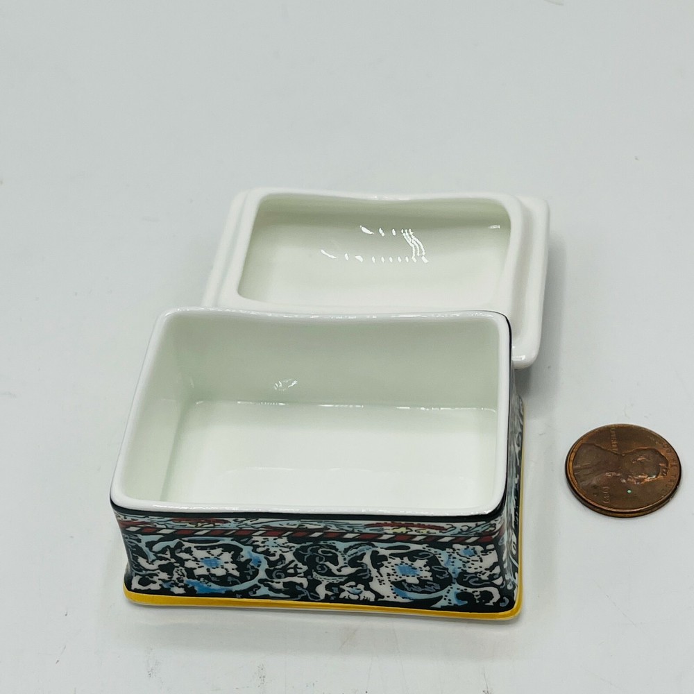 Finish: Antique Shape: Diamond Size: Small Style: Art Nouveau Seller Notes: “In beautiful condition. No chips or cracks. Measures 2 1/2" x 1 3/4" x 1 1/4" "” Material: Porcelain Pattern: Floral Country/Region of Manufacture: United Kingdom Features: Hand Painted Color: Multicolor Brand: William Morris London Type: Trinket Box Collection: Keepsake Boxes Subject: Flowers