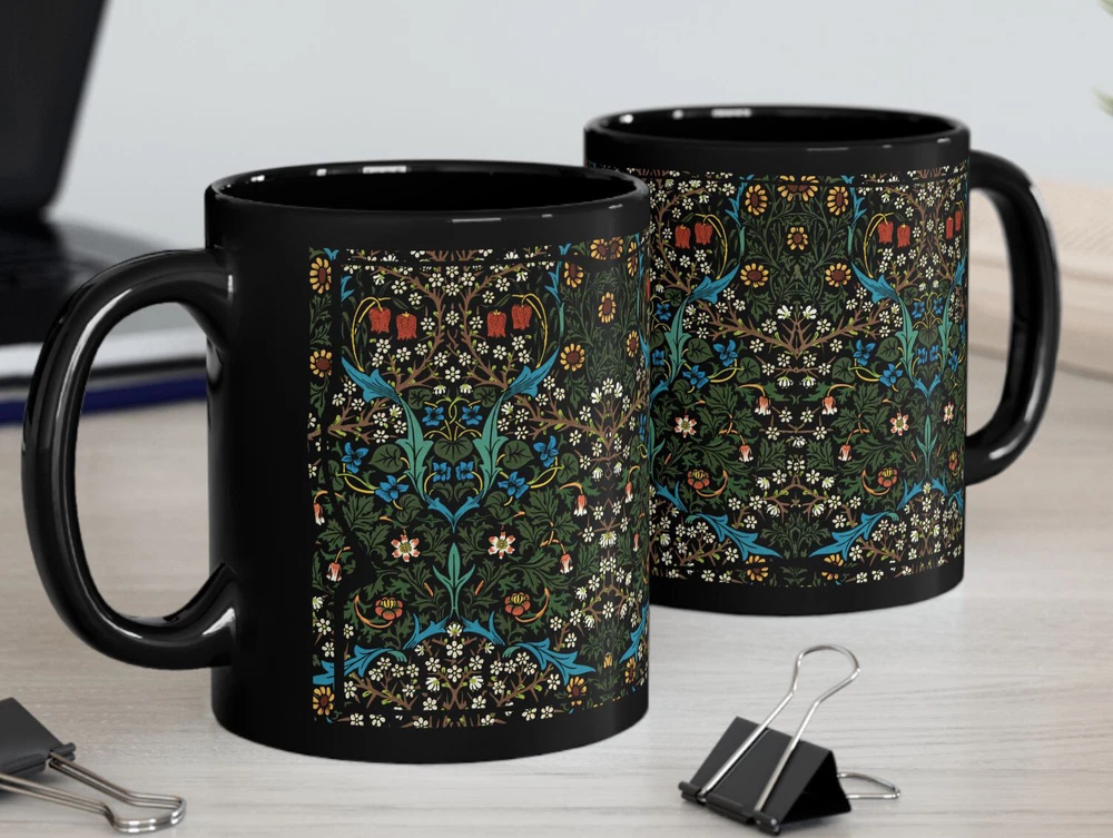 CERAMIC MUG - 11 oz. or 15 oz. size Sip in timeless style with this elegant mug featuring William Morris’ beloved Blackthorn design. A true classic of the Arts and Crafts movement, this floral pattern weaves together intricate blossoms, winding branches, and foliage in rich, nature-inspired tones. Whether you're enjoying your morning coffee or winding down with herbal tea, this mug brings a refined touch of vintage British design to your everyday rituals. A perfect gift for admirers of antique textiles, nature-inspired decor, or the enchanting charm of cottagecore. Keywords : William Morris mug, Blackthorn mug, Arts and Crafts cup, vintage floral mug, botanical coffee mug, nature print mug, antique pattern cup, Morris flower mug, British textile mug, cottagecore tea cup, floral tapestry mug, elegant botanical mug, William Morris gift Whether you're drinking your morning coffee, evening tea, hot chocolate, or something in between – this mug's for you! It's sturdy and glossy with a vivid print that will withstand the microwave and dishwasher. • Ceramic • Dishwasher and microwave safe • Rounded Corners • C Handle • Suitable for hot or cold beverages • 11 oz or 15 oz size 11 oz cup Height: 3.75" 11 oz cup Diameter: 3.15" 15 oz cup Height: 4.75" 15 oz cup Diameter: 3.25" **************** ABOUT PRODUCTION AND SHIPPING: ~ How it works: I am an independent designer, not the manufacturer. My designs are printed on products manufactured by my production partners (e.g., “Print on Demand”.) ~ Your item is sent to production to be made very quickly after you order it. ~ Once production starts (usually within an hour), it cannot be canceled. ~ The average production time depends upon the product. ~ Please refer to the item listing for a delivery estimate. ~ We do not have the ability to “rush” an order or promise delivery by a specific date. ~ Please allow enough time for your order to get to you when you need it. ~ Please carefully check your shipping info/details. In the case of an incorrect shipping address, we do not cover the cost of reshipment. ABOUT THE COLORS & SIZING: ~ Actual colors may vary slightly. ~ Every computer monitor displays colors slightly differently. ~ We make every effort to display the colors of each item as accurately as possible. ~ Please see the size chart on each item listing (if applicable). If you are between sizes, please follow the guidance on the item's size chart. CUSTOMS CHARGES / IMPORT TAXES: ~ Buyer is responsible for any and all Customs Charges and/or Import Taxes imposed, required and collected by your country. RETURNS, EXCHANGES, CANCELLATIONS: ~ We do not accept returns. Because your item is made especially for you, our production partners will not accept it back & they will not reimburse us. Therefore, it is not feasible for us to accept returns. We ask for your understanding that we are a small business so returns really impact our ability to operate. ~ If you receive a damaged or defective item or if the wrong item, please contact us right away. We will work with you and our production partners to make it right. Thank you for shopping with us! We appreciate your business!