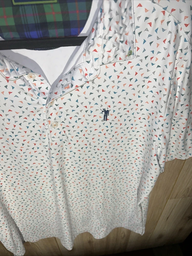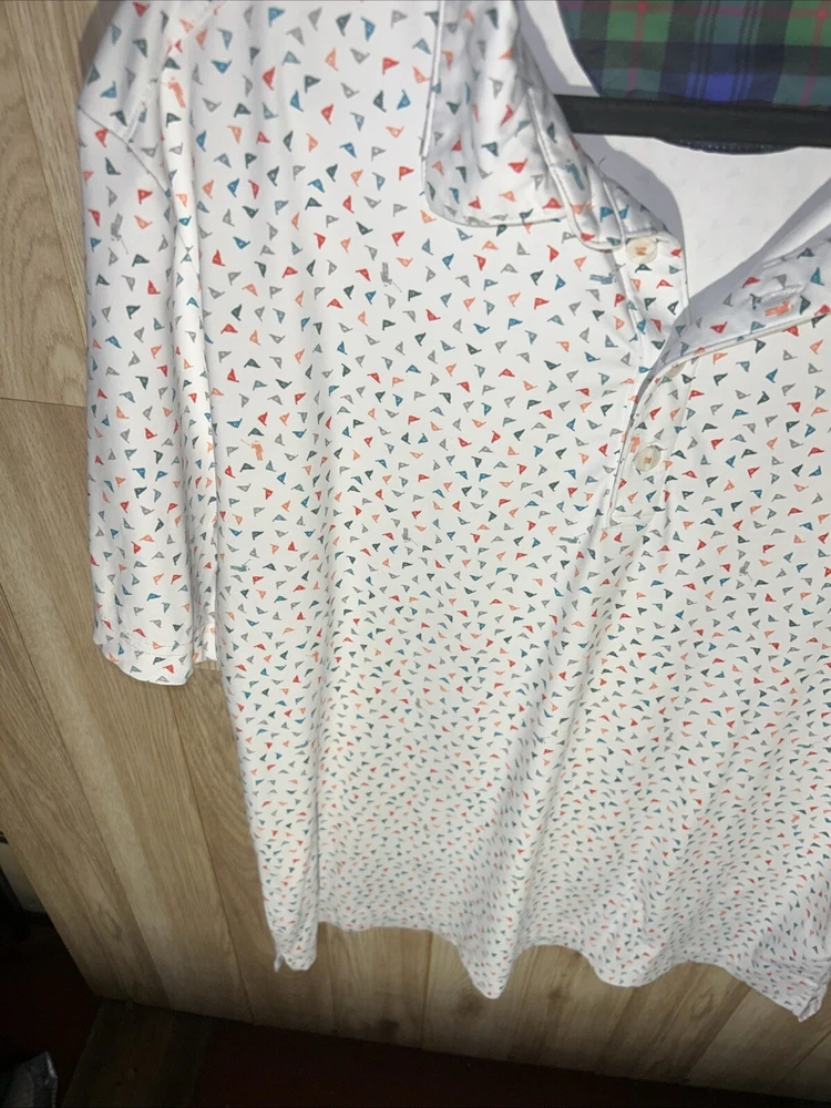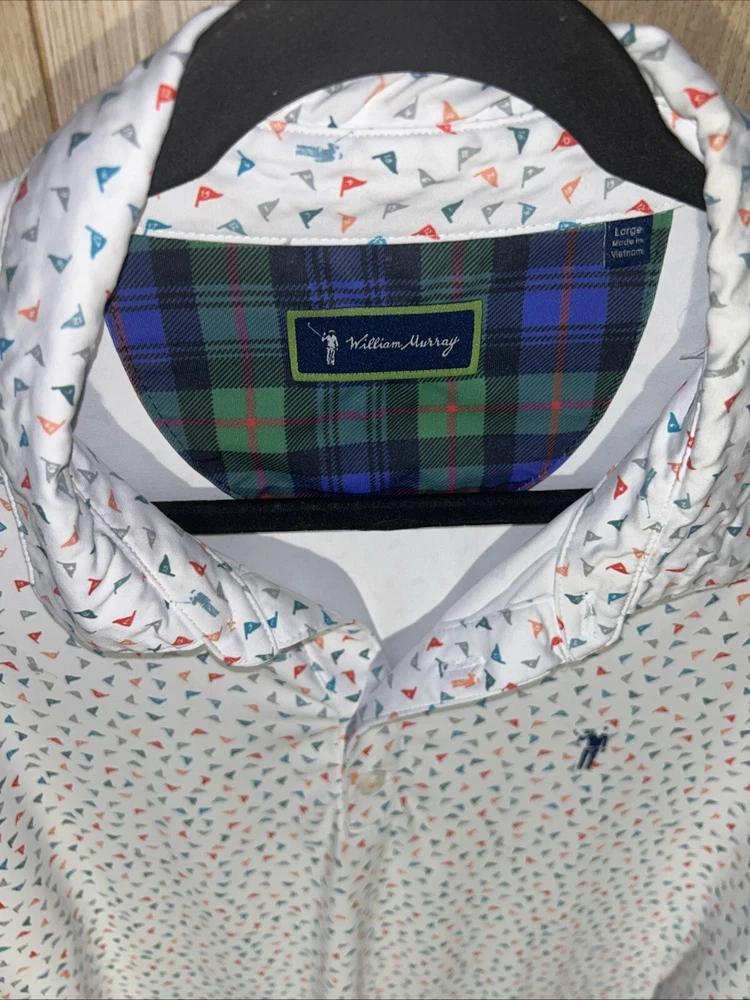 Elevate your wardrobe with this stylish William Murray Performance Pin High Pin All Over Print Geometric Polo in size L. This polo shirt is perfect for any occasion, whether it's a casual day out, a party, or even travel. The shirt is made from a lightweight and breathable knit fabric, which makes it perfect for all seasons. Featuring a spread collar and short sleeves, this polo shirt is designed for comfort and ease of wear. The all-over print geometric pattern adds a touch of color and style to the shirt, while the logo accents provide a classic and sophisticated touch. This shirt is machine washable and easy to care for, making it a great addition to any wardrobe.
