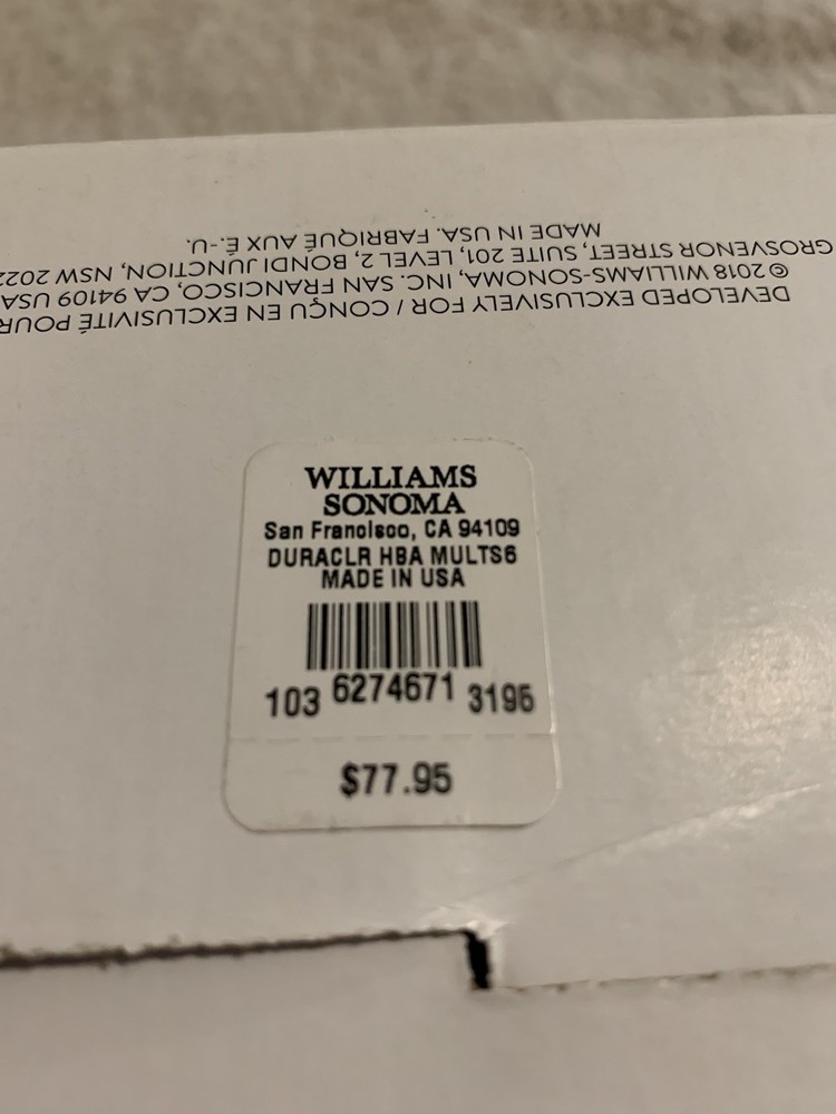 Brand:Williams-SonomaOccasion:All OccasionsGlassware Type:Stemless GlassSet Includes:Highball GlassColor:MulticolorMPN:N/ADepartment:AdultsModel:DuraclearTheme:Food & DrinkNumber of Items in Set:Six-PieceService For:6Type:Highball GlassMaterial:Polycarbonategtin13:Does not applyFeatures:Dishwasher SafeCharacter:N/ACapacity:17ozUPC:Does not applyCountry/Region of Manufacture:United States