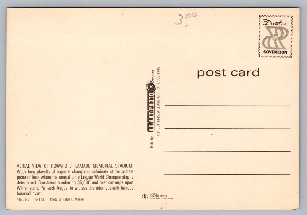 Williamsport PA Little League World Series Howard J Lamade Stadium Postcard P1