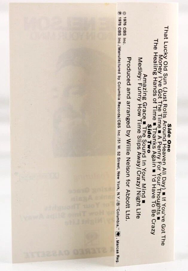 Willie Nelson - The Sound In Your Mind Cassette Tape Outlaw Country 1976 Tested WILLIE NELSON - THE SOUND IN YOUR MIND VINTAGE CASSETTE TAPE ORIGINALLY RELEASE IN 1976, THIS IS A RE-RELEASE FROM THE 1980'S ONE OF THE ORIGINAL OUTLAW COUNTRY STARS GREAT COLLECTORS' ITEMS TESTED WORKS GREAT GREAT ADDITION TO YOUR HISTORIC COUNTRY MUSIC COLLECTION COUNTRY MUSIC LEGEND ✨✨✨ THE CASSETTE IS IN VERY GOOD CONDITION, IT WAS TESTED AND WORKS GREAT. THE JEWEL CASE IS ALSO IN VERY GOOD CONDITION THE INLAY IS GOOD ONLY MINOR SIGNS OF AGING. PLEASE SEE PICS ✨✨✨✨✨✨✨✨✨✨✨ The VinKris Collection is committed to delivering a great experience! We will ship to you with the greatest of care All items are shipped in sturdy boxes We use packing materials appropriate for the product to help ensure safe delivery Shipments to the United States and Protectorates are handled via USPS International shipments will ship via Ebay's International Shipping Program All packages are shipped within 1 business day of payment We ship daily Monday through Saturday Worry free purchases, we stand behind everything we sell with free 30 day returns We have thousands of happy customers and our goal is 100% customer satisfaction We are happy to answer any questions