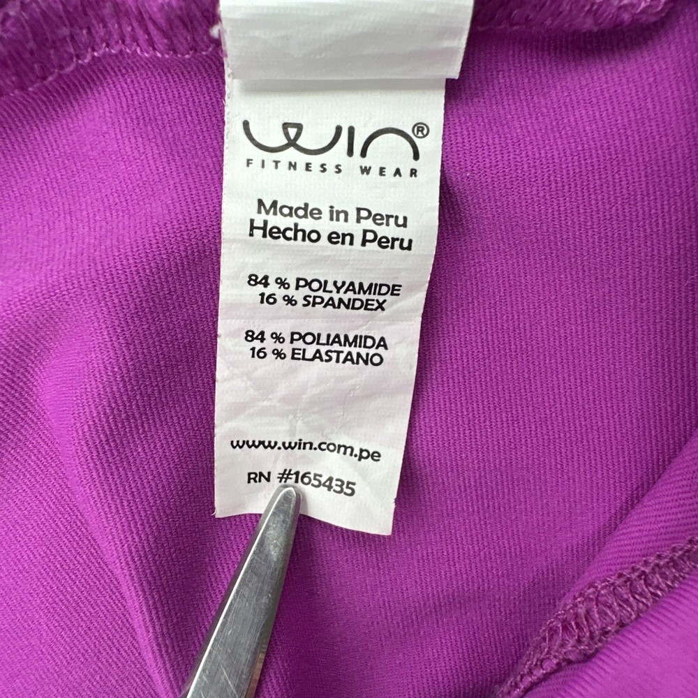 The Fitness Wear Leggings for women in one size are designed for activewear with a solid purple color and logo accents. Made from a blend of polyester and spandex, these leggings feature compression, elastic waist, and comfort for various activities such as cross training and CrossFit. Perfect for winter and spring seasons, these ankle-length leggings from the brand Fitness Wear are versatile for different occasions. Made in Peru, these leggings offer a stylish and functional option for women looking for quality workout wear. Check pictures for flaws and measurements
