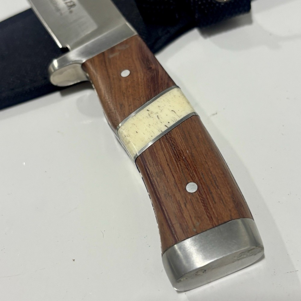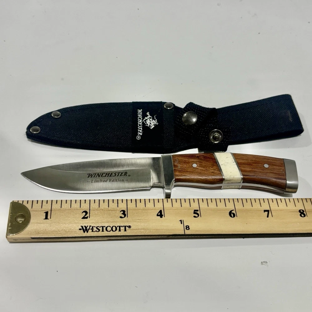 This Winchester Limited Edition knife is a true masterpiece—stunning rosewood and ivory handle, razor-sharp silver blade, and full tang construction make it both beautiful and functional. Perfect for collectors and hunters, it comes with a sheath for easy carry. A must-have for anyone who appreciates fine craftsmanship!