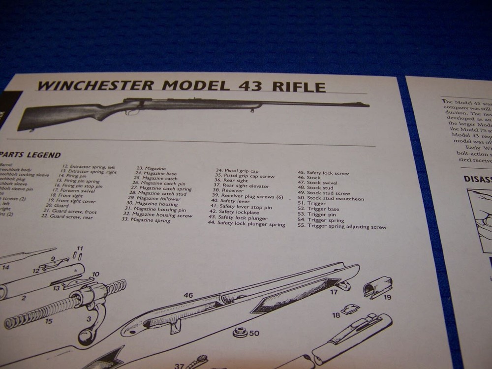 UP FOR SALE IS AN ORIGINAL PRINT 2-PAGE DRAWINGS ON... WINCHESTER MODEL 43 RIFLE (SERIES) (2-PAGES) Page/s size: APROX: 8 1/2" X 11" SUBJECT: .. WINCHESTER MODEL 43 RIFLE (SERIES) . . . . . . . .....PERFECT FOR FRAMING!!! AUTHOR/ARTIST: N/A YEAR: 2009 ORIGINAL PRINT SCALE: N/A ARTICLE FEATURES: EXPLODED VIEW WITH PARTS LEGEND (IF SHOWN)/DETAILS/MAGAZINE (IF APPLICABLE)/SHORT DISASSEMBLY INSTRUCTIONS CONDITION: GREAT-LIGHT COLORING(NORMAL)..NOTE: ** SOLD FOR 2-PAGES DRAWINGS/PROFILES ...ANY OTHER ARTICLE ON BACK OF DRAWINGS/ARTICLE ARE NOT REPRESENTED IN THIS AUCTION!*** (REMEMEBER THESE ARTICLES ARE EXTREMELY OLD AND RARE...SOME MAY HAVE SOME BORDER DISCOLORATION/SMALL EDGE CHIPS/PAGE DISCOLORATION)/BINDING CUTOUTS.....SEE CONDITION AND NOTES LISTED ABOVE AS TO EACH ARTICLE! **THESE ARE AIRCRAFT ARTICLES THAT HAVE BEEN EXTRACTED FROM VINTAGE MAGAZINES/ECT,.. AND ARE INDIVIDUAL PAGES OF EACH SUBJECT AND SOLD AS COMPLETE ARTICLES ON EACH SAID AIRCRAFT AS LISTED ABOVE!.. NOT SOLD AS A COMPLETE MAGAZINE or BOOKLET!!! **all articles are shipped flat on cardboard flat and mail flat in manila envelope to INSURE condition! ** I DO OFFER COMBINED SHIPPING ON MULTIPLE ITEMS PURCHASED